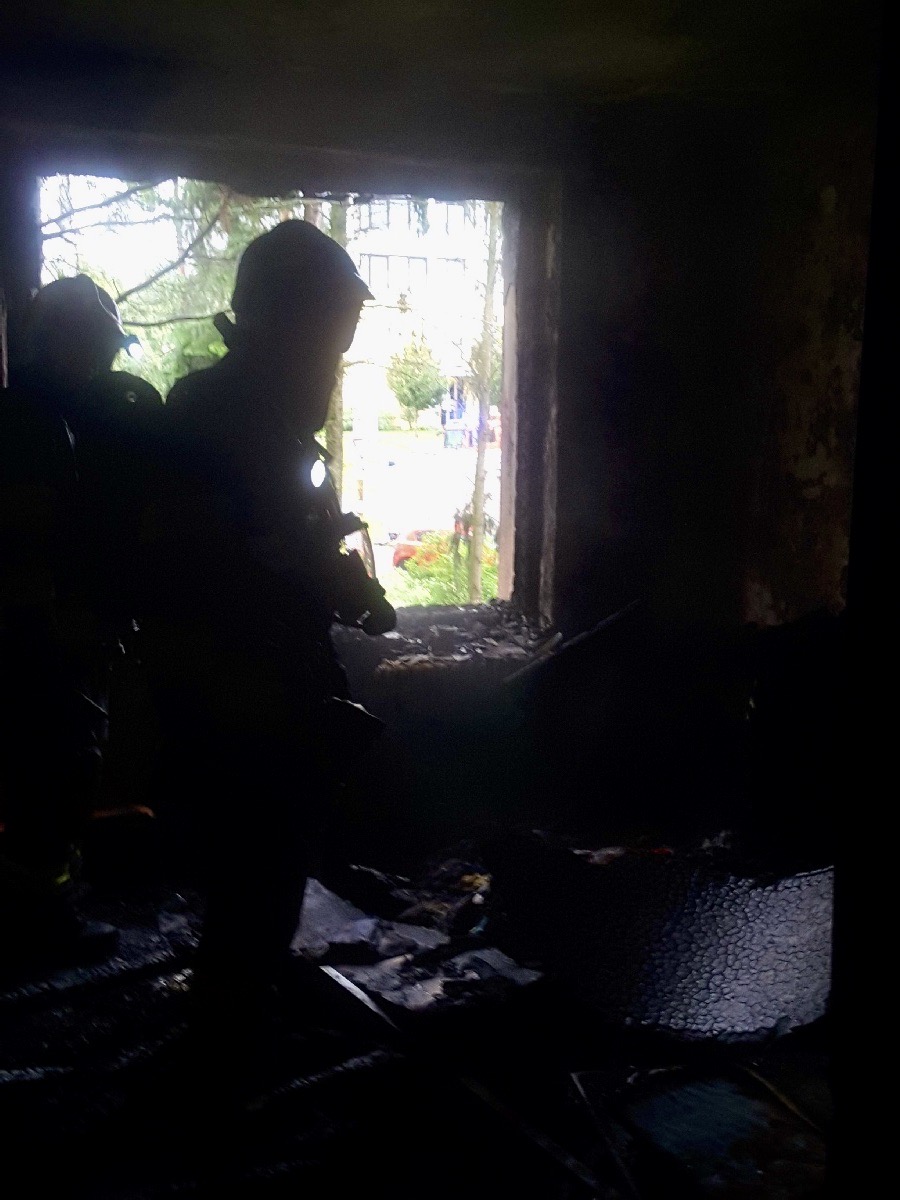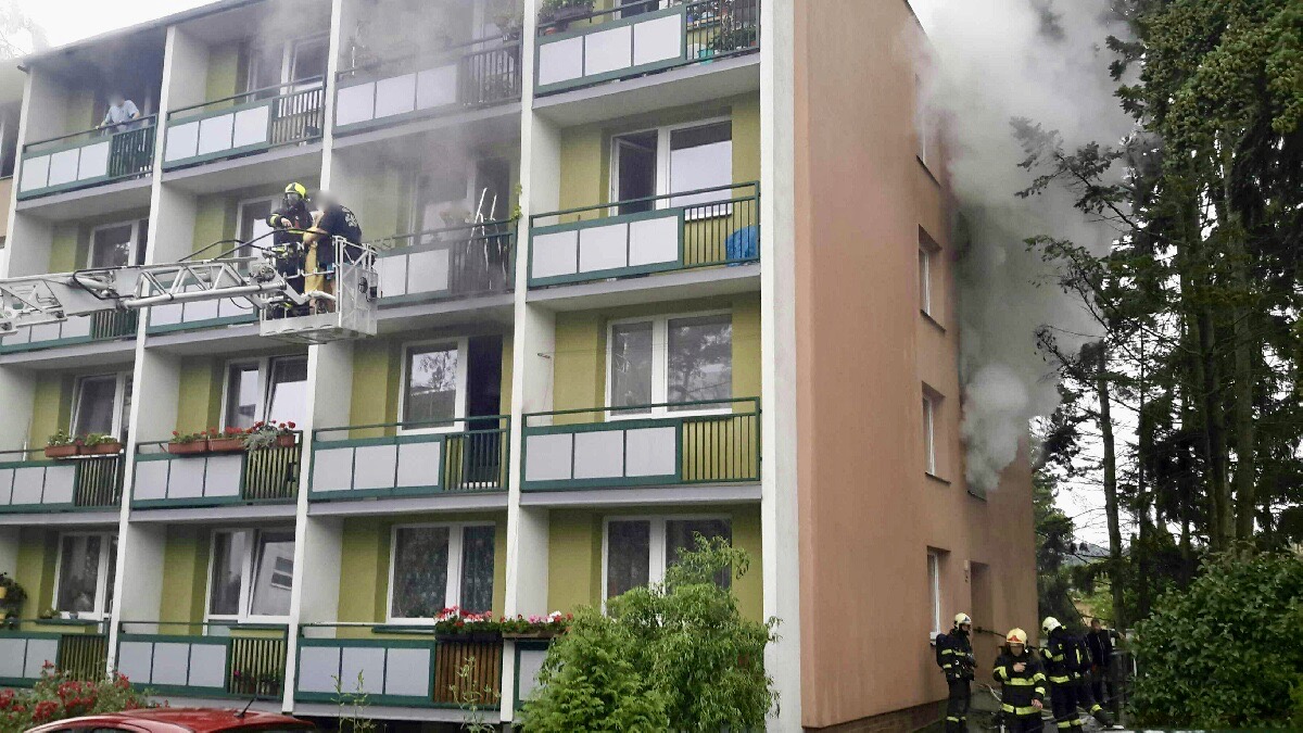 Byt hořel v prvním patře čtyřpodlažní bytovky. Celý jeden pokoj byl v plamenech, na likvidaci jsme nasadili jeden vodní proud.