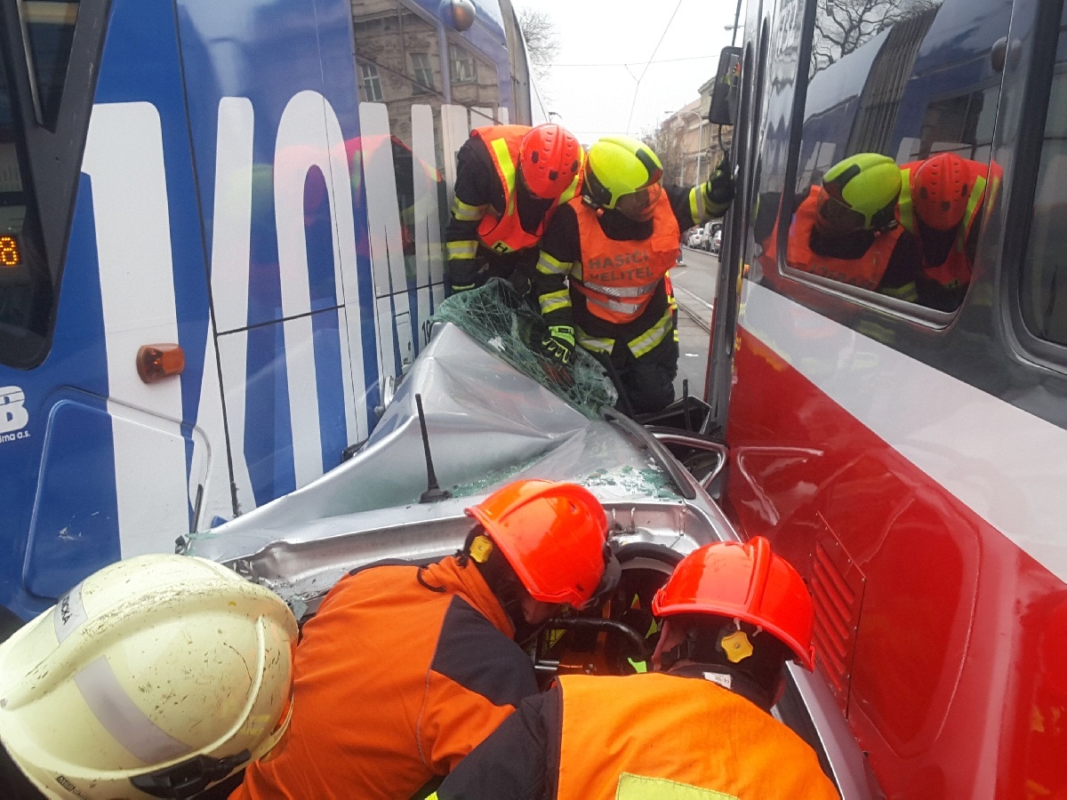 Hasiči dorazili na místo za čtyři minuty od vyhlášení poplachu. Auto zůstalo po nehodě sevřené mezi tramvaje a uvnitř seděl zaklíněný řidič, který s hasiči komunikoval. S použitím hydraulického vyprošťovacího zařízení a po odstranění střechy se muže podařilo během čtvrt hodiny vyprostit a předat do péče posádky ZZS.