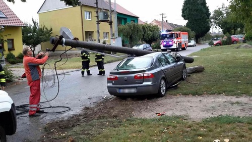 Osobní vozidlo při dopravní nehodě v neděli 3.září 2017 přerazilo sloup elektrického vedení. Pracovníci pohotovostní služby rozvodných závodů odpojili elektrický proud. Hasiči pomocí jeřábu sundali sloup z havarovaného vozidla a provedli úklid střepů.