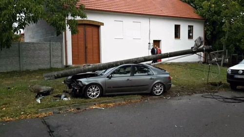 Osobní auto v Moravské Nové Vsi přerazilo sloup elektrického vedení.