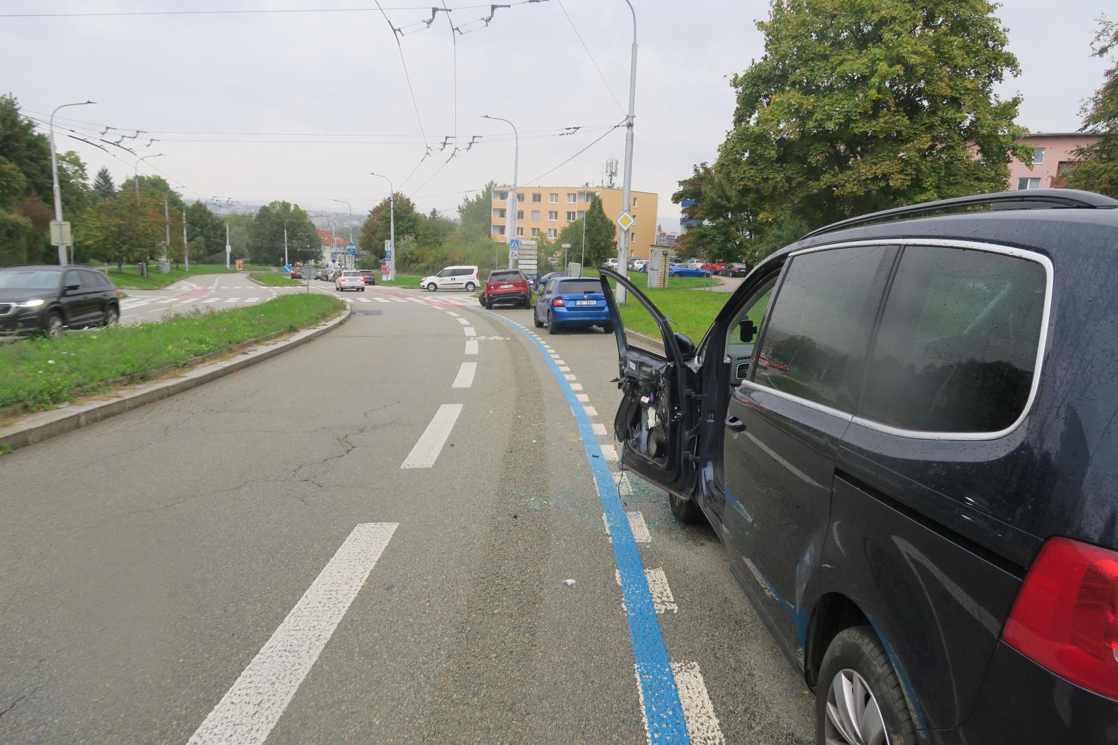 V Brně došlo k vážné dopravní nehodě, při které byl sražen muž nastupující do svého zaparkovaného auta. Řidič vozidla neznámé značky po střetu pokračoval v jízdě a způsobil kolizi s dalším zaparkovaným vozem. Zraněný byl převezen do nemocnice. Policie případ nadále vyšetřuje.