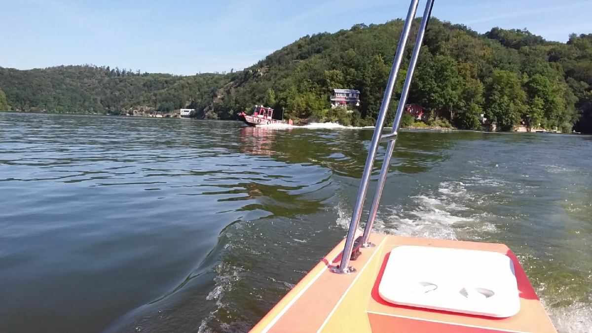 Čtvrtek, 20. srpna 2020 - Dnes dopoledne jsme na Znojemsku pomohli záchranné službě s transportem pacienta. Pomocí motorového člunu jsme jej přepravili k sanitce.