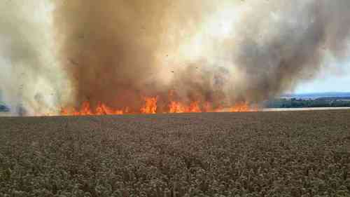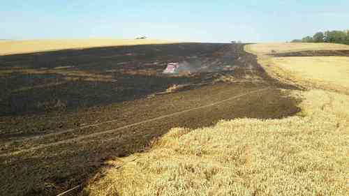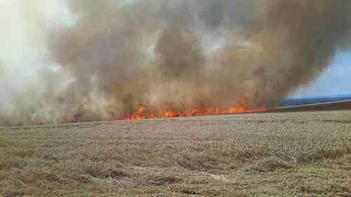 Požár se rychle rozšířil na 15 hektarů pšenice.