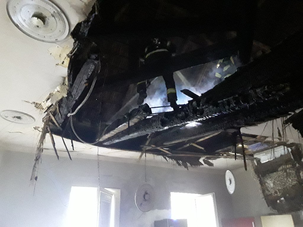 Oheň zachvátil stropní konstrukci