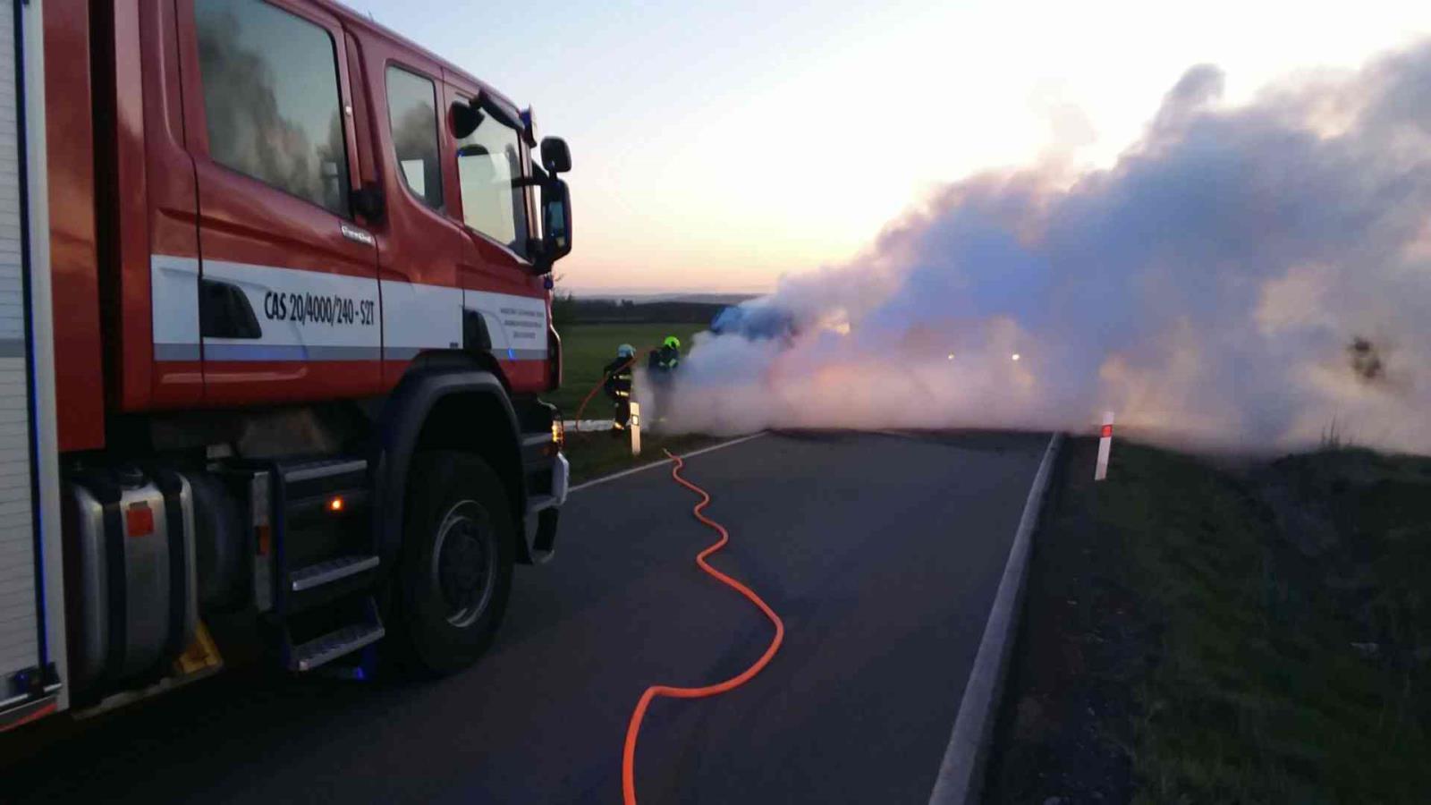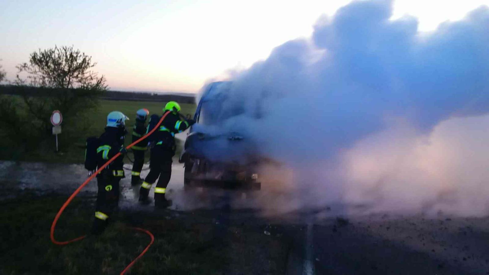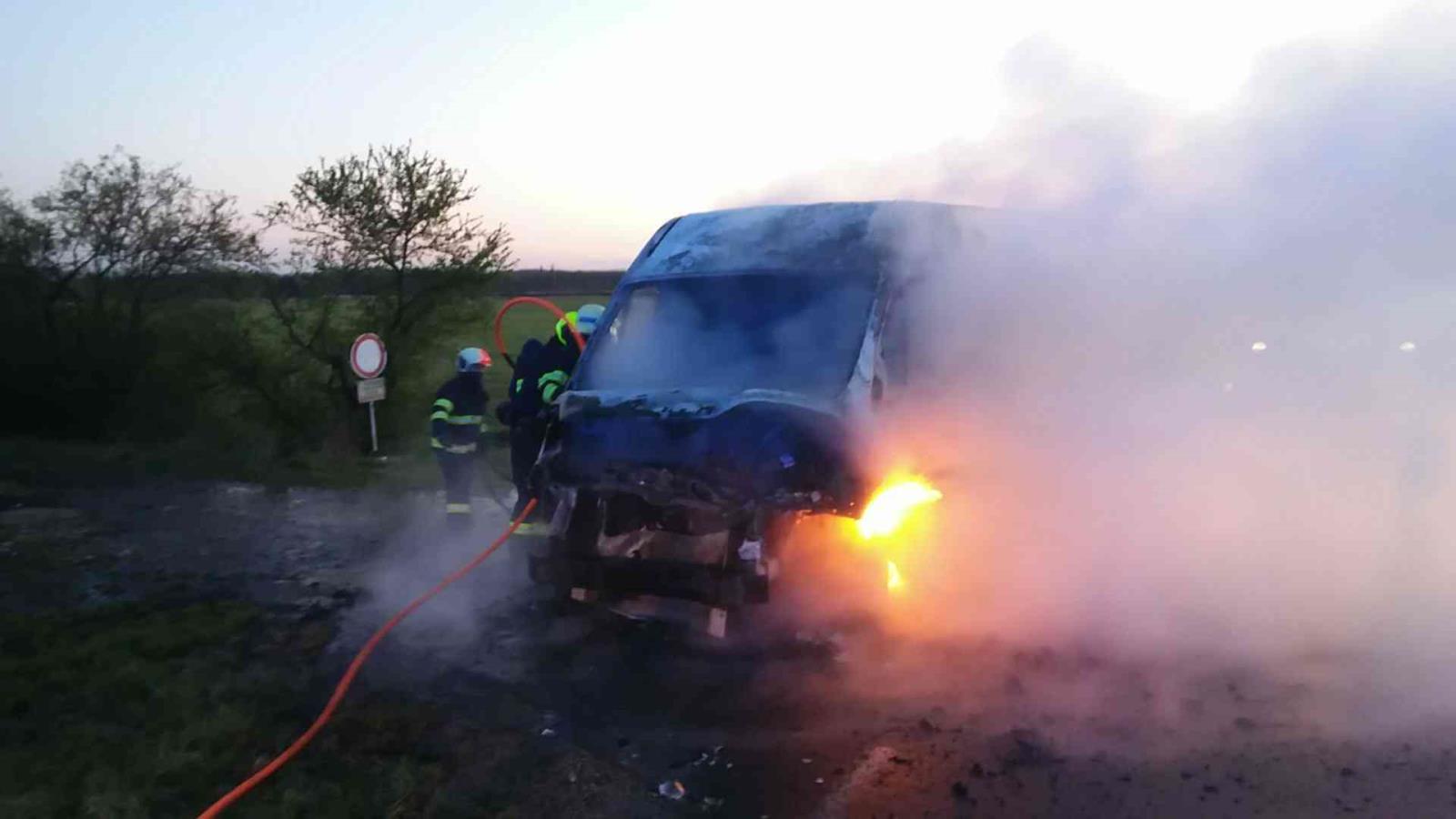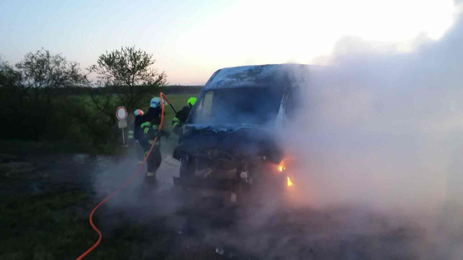 Úterý, 14. dubna 2020 - V ranních hodinách dvě jednotky likvidovaly požár dodávky u obce Nikolčice. Plameny zachvátily motorovou...
