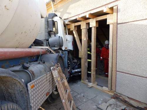 Při hrozivě vypadající nehodě domíchávače a osobního auta se nikdo nezranil. Při kolizi však došlo k vážnému narušení statiky rodinného domu. Poškozen byl i přívod plynu a elektrické energie. V první fázi tak bylo nutné s pomocí pracovníků pohotovostních služeb odpojit plyn a elektřinu. Jelikož byly oba hlavní uzávěry zataraseny havarovanými vozy, museli plynaři vykopat plynové potrubí a to přerušit. Do uzavření plynu musela být celá ulice bez elektrické energie. Další velmi náročnou a nejdelší činností bylo statické zajištění domu.