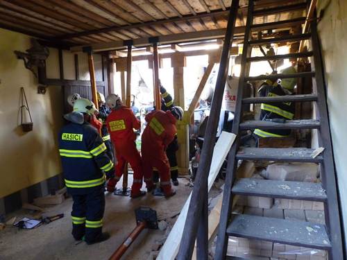 Po konzultaci situace se statikem si velitel zásahu povolal techniku z brněnské požární stanice Lidická s výdřevou a stabilizačními tyčemi Paratech. Během čtyř hodin se podařilo objekt zajistit natolik, aby mohla být obě auta postupně a velmi opatrně odtažena.
