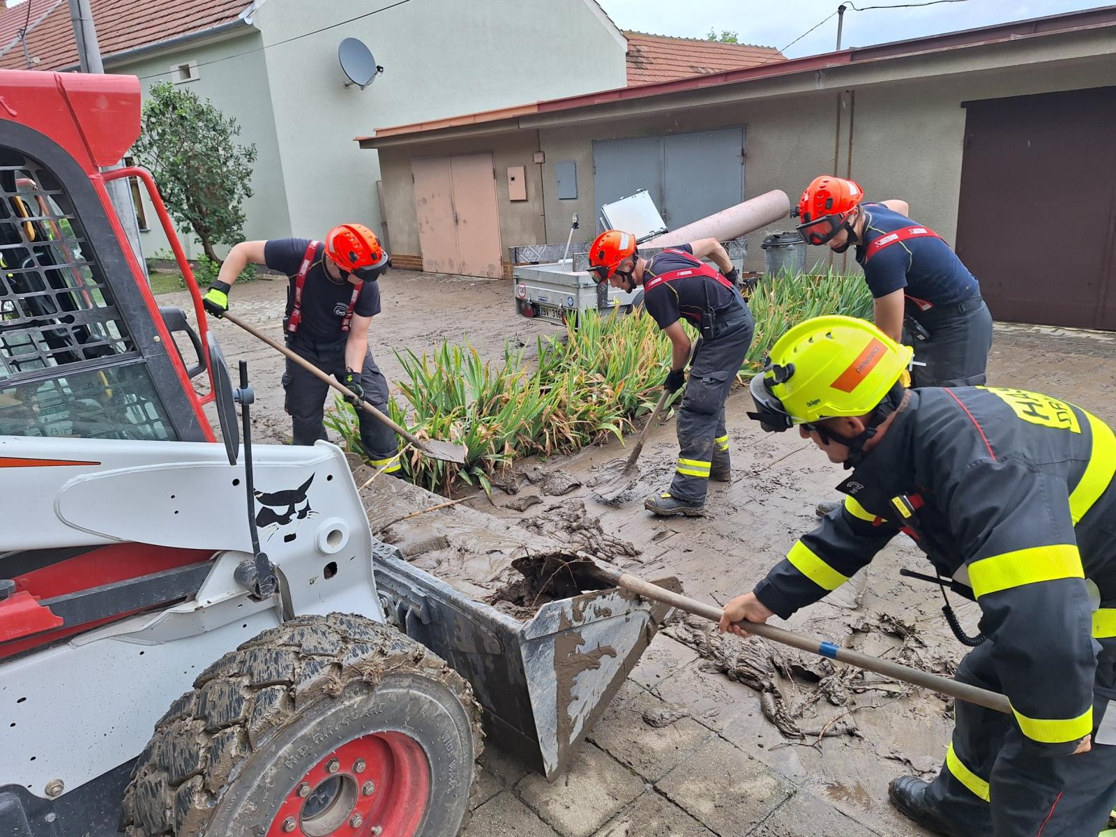 V dopoledních hodinách pokračovalo odstraňování následků v postižených obcích na Vyškovsku. V Milonicích pracovalo na 50 profesionálních a dobrovolných hasičů. Soustředili se jednak na očištění komunikací od naplavenin a také na odčerpávání zatopených prostor v domech a zahradách.