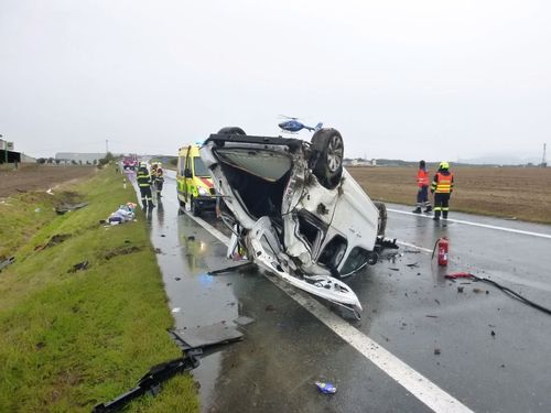 Další vážnou nehodu museli hasiči řešit na komunikaci č. I/53. Osobní vůz, ve kterém cestovala čtyřčlenná rodina, dostal smyk na mokré vozovce a převrátil se na střechu. Zraněné děti byly letecky transportovány do Dětské nemocnice a rodiče odvezly k dalšímu ošetření pozemní posádky záchranné služby.