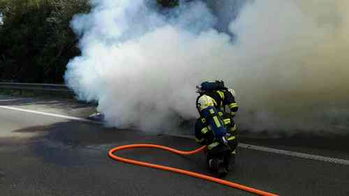 Hasiči museli na několik minut zastavit provoz na dálnici ve směru na Vyškov a začala tak vznikat kolona.