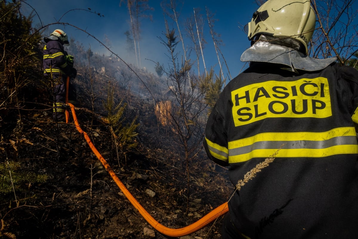 Požár lesa a porostu u Sloupu jsme hasili téměř 7 hodin