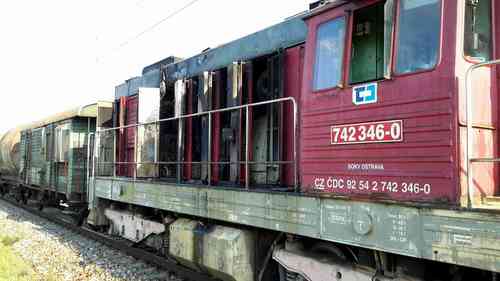 Požár motorové lokomotivy na Břeclavsku
