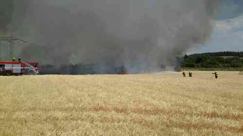 Požár nahlásil oznamovatel na tísňovou linku krátce před patnáctou hodinou. Dle prvotního hlášení hořel vzrostlý ječmen na ploše 20 m2. Další hovory, které operační středisko přijalo, informovaly o rychle se šířícím požáru. V době příjezdu první jednotky na místo události se požár díky poryvům větru již rozšířil na několik hektarů. Velitel zásahu požádal o posilové jednotky a vyhlášení druhého stupně požárního poplachu.