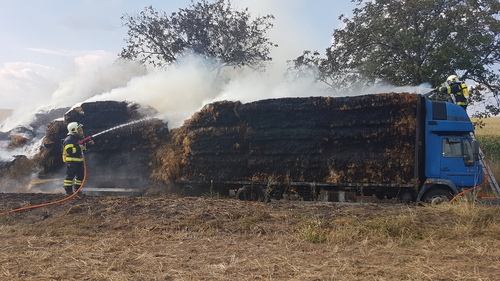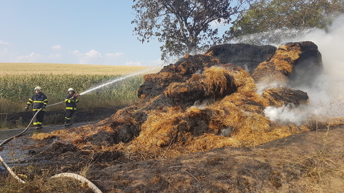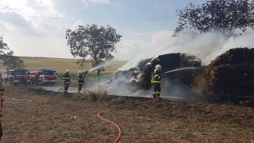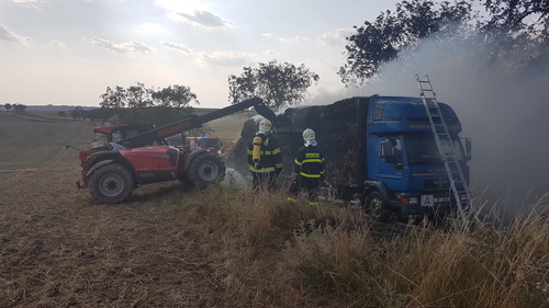 V sobotu,  4. srpna 2018, se šest jednotek hasičů  postupně sjelo k hořícímu náklaďáku se slámou mezi obcemi Archlebov a Žarošice.