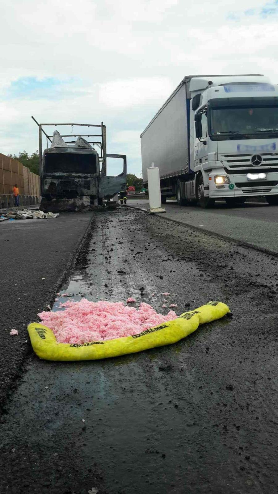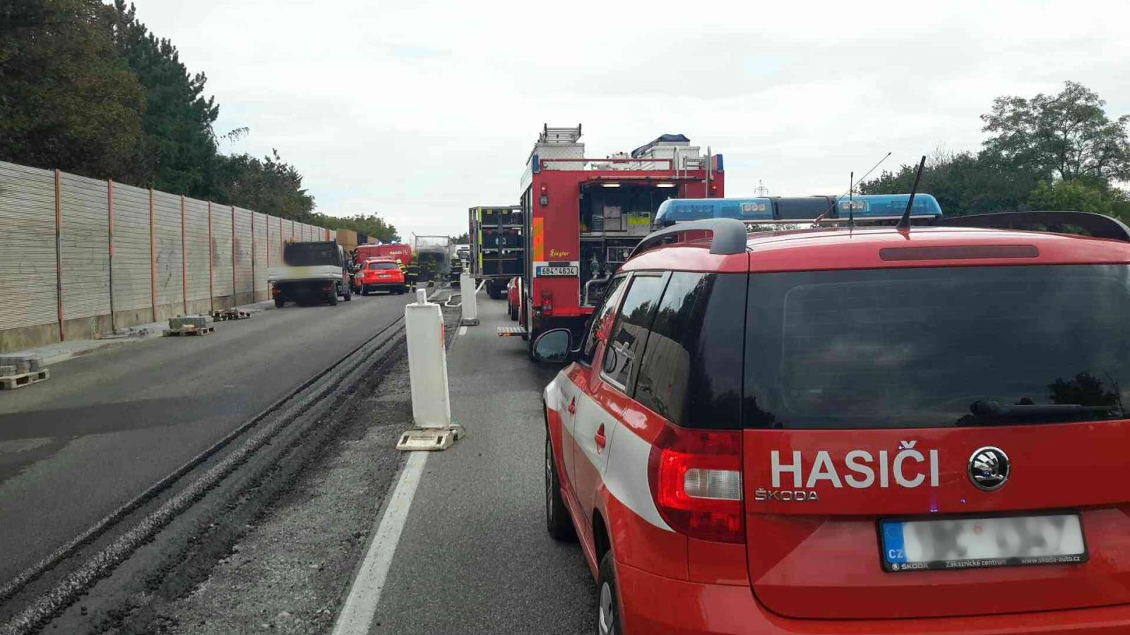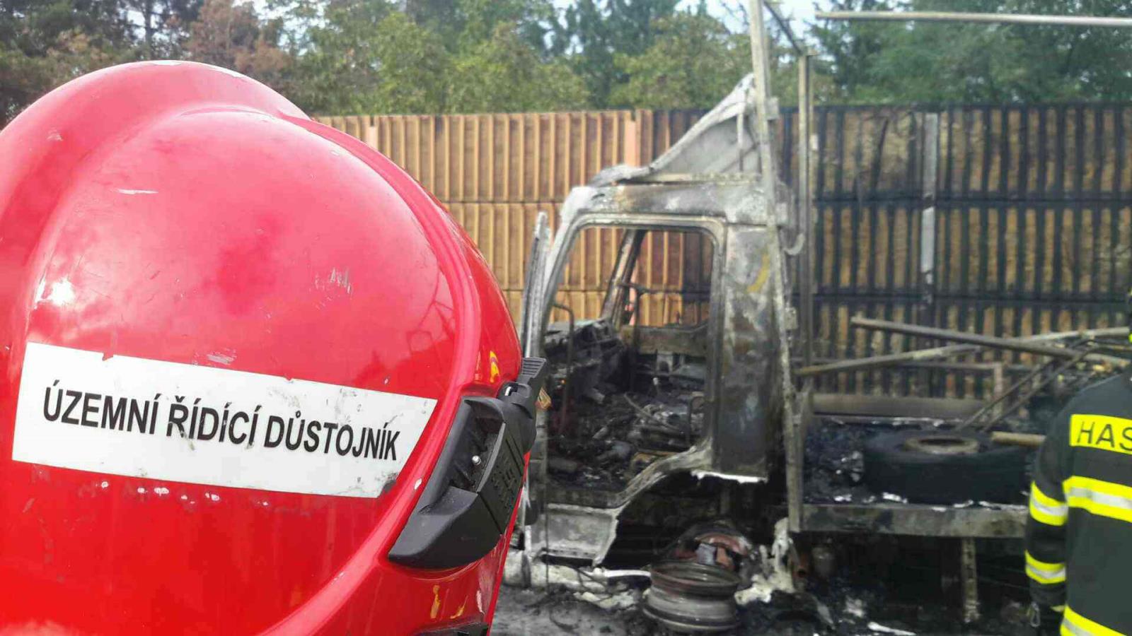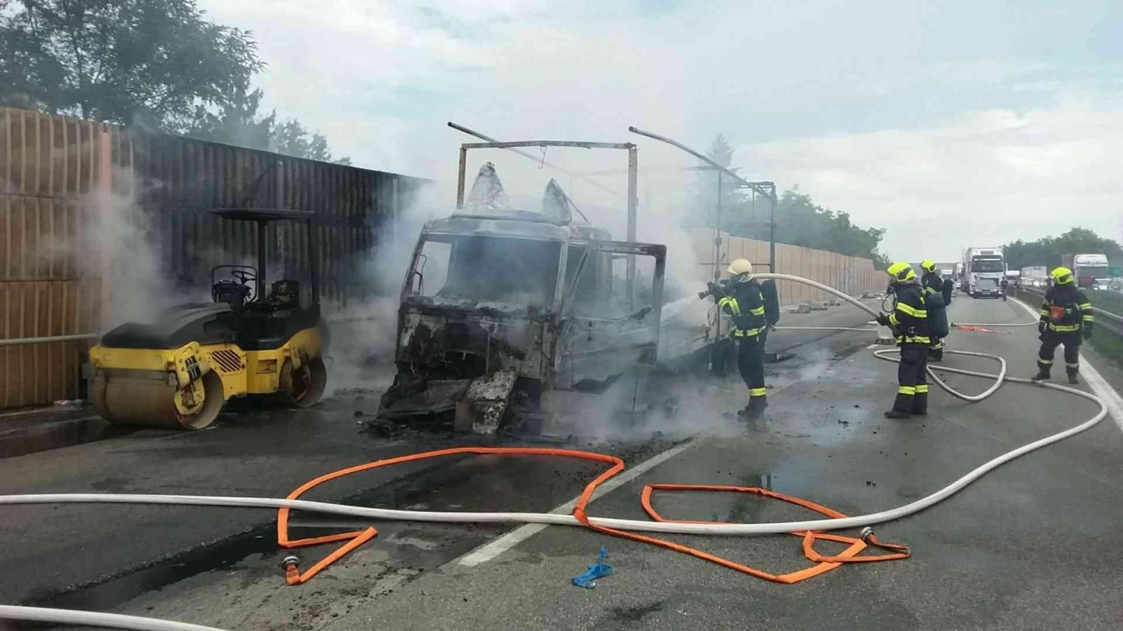 Krátce před patnáctou hodinou jsme na tísňové lince přijali informaci o požáru nákladního automobilu na 191. km dálnice D1 ve směru na Prahu. Po příjezdu první jednotky na místo zásahu byl již celý vůz v plamenech a požár se dále šířil na vedle stojící stavební stroj a protihlukovou bariéru.