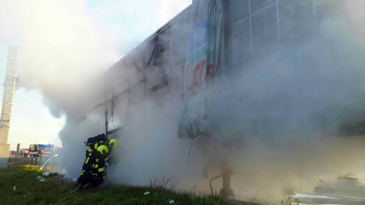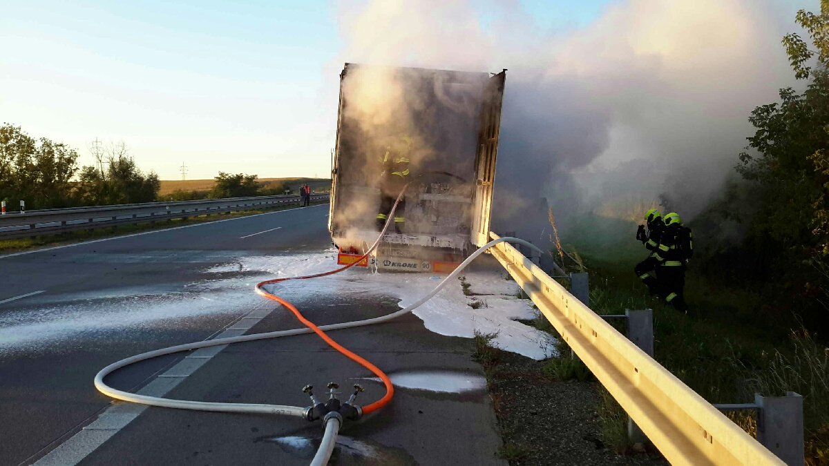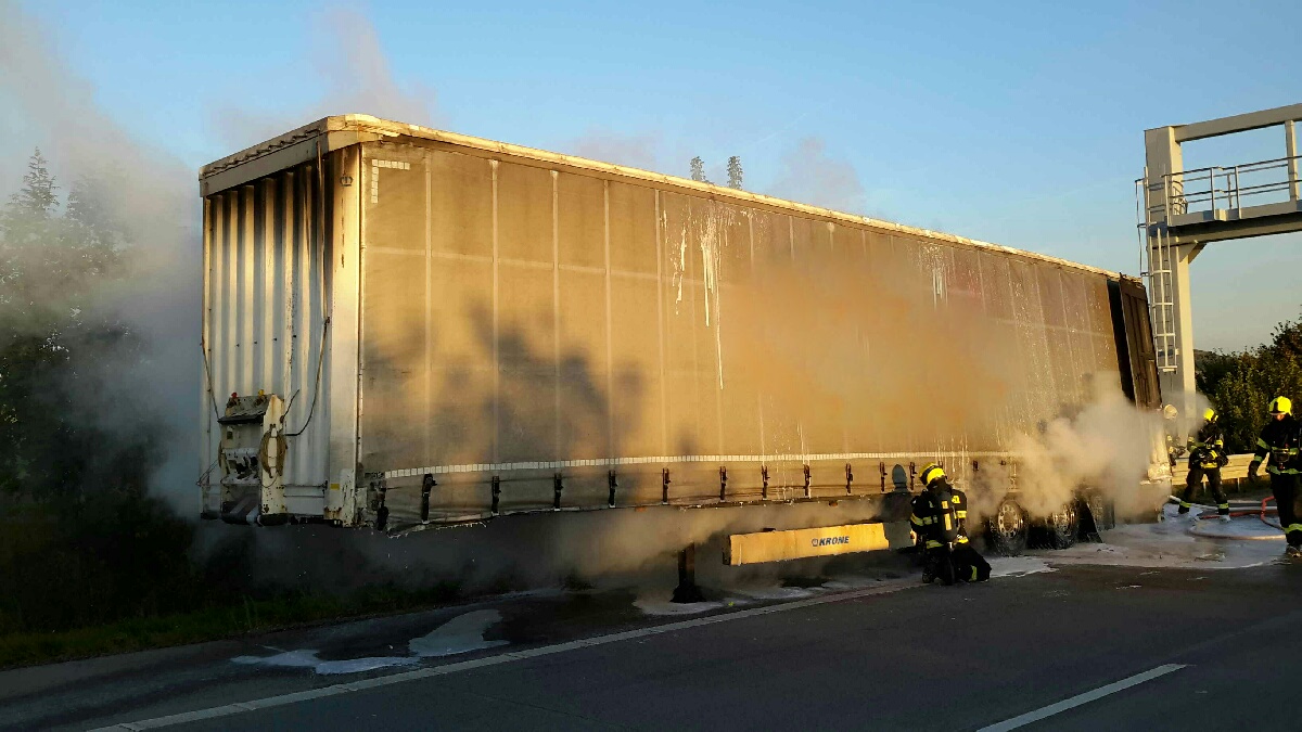 Požár návěsu kamionu na dálnici D2