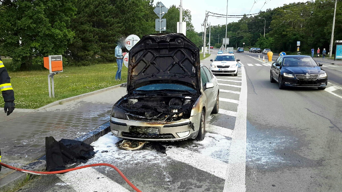 Středa, 17. června 2020 - V odpoledních hodinách hasiči ze stanice BVV likvidovali požár osobního auta v Brně Kohoutovicích. Do boje proti plamenům v motorové části auta nasadili vysokotlaký proud. Oheň způsobil škodu za 50 tisíc korun. Příčina vzniku požáru je v šetření. Při požáru se nikdo nezranil.