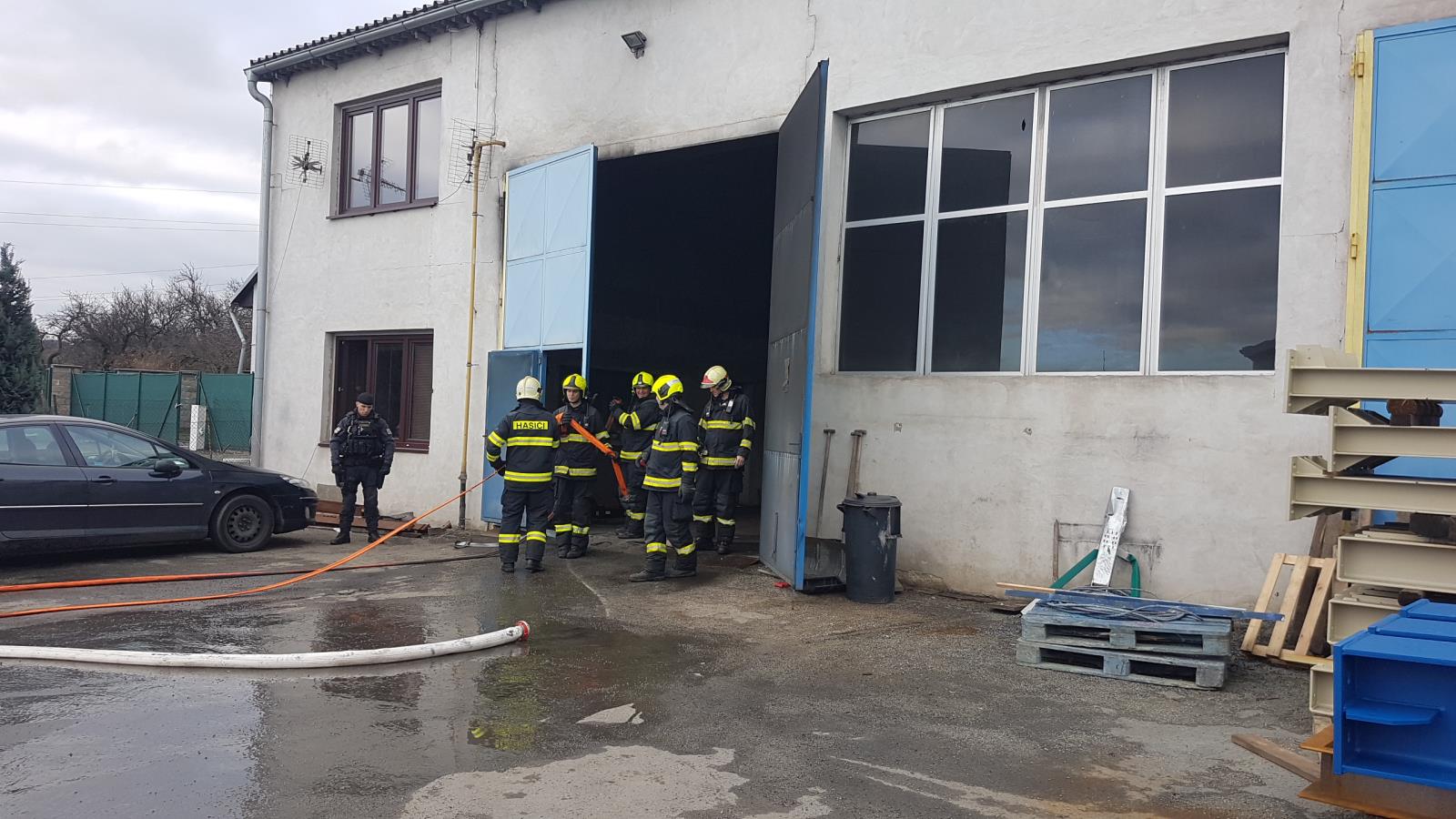 Celkem šest jednotek zasahovalo u požáru stroje, který byl určený na tryskání a pískování kovových materiálů. Do prostoru haly 15x30 metrů hasiči postupně nasadili tři vodní proudy. Použili i speciální řezací a hasící zařízení Cobra. Plameny hasiči dostali pod kontrolu v 12.37 hodin. Požár byl zcela uhašen v 15.36 hodin.