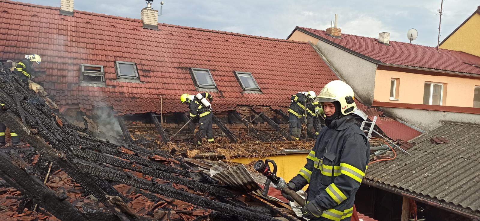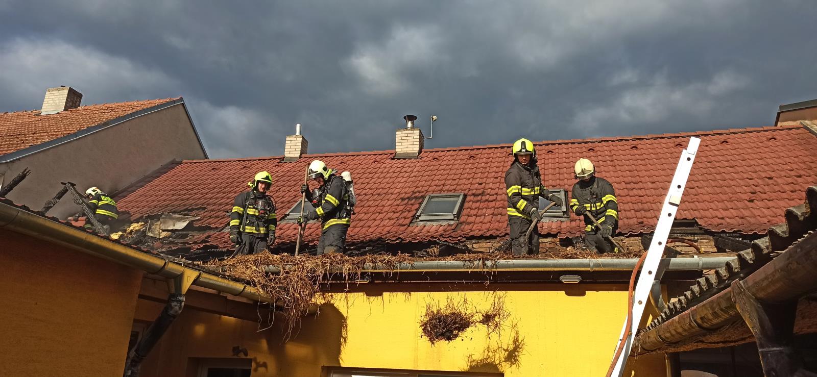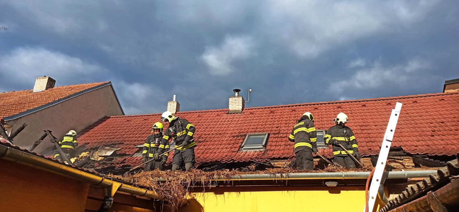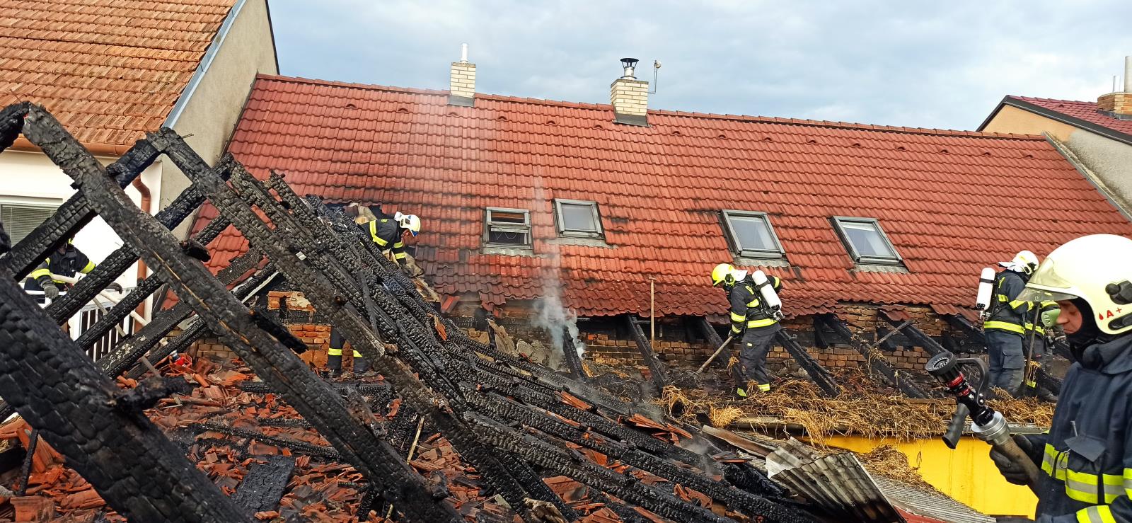 V 18.22 hodin hasiči dostali oheň pod kontrolu. Pomocí termokamery vyhledali skrytá ohniska. Rozebírali zborcenou střešní konstrukci a vyklízeli slámu z půdy. Následně slámu prolívali na zemi vodou. Plocha zasažené střechy byla 10 x 7 metrů.