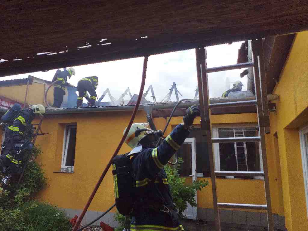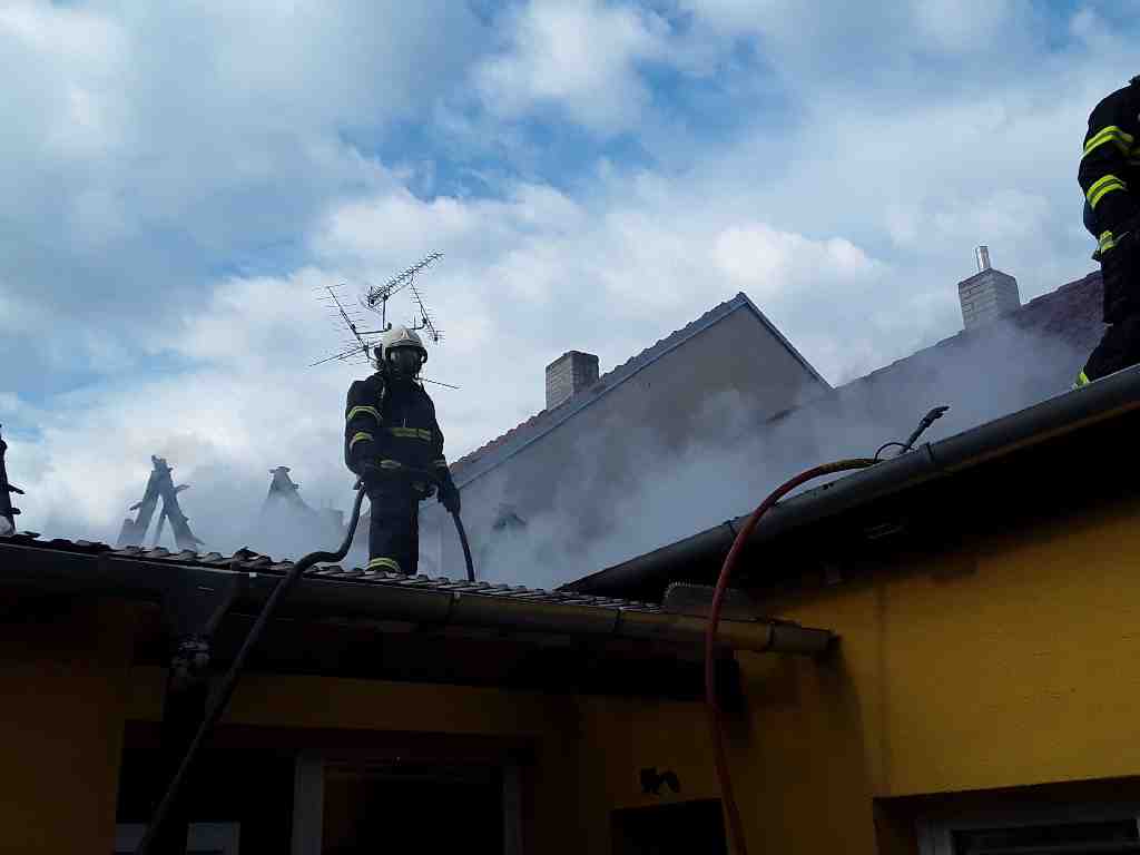 Neděle, 30. května 2021 - Šest jednotek v odpoledních hodinách likvidovalo požár střechy rodinného domu v obci Mutěnice na Hodonínsku. Hasiči do boje proti plamenům postupně nasadili 3 vysokotlaké a 3 vodní proudy. Zásah probíhal v dýchací technice.