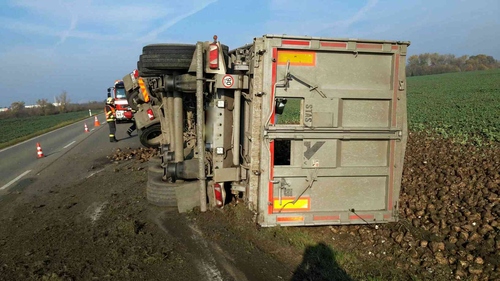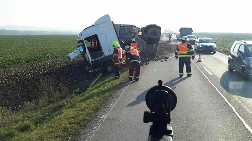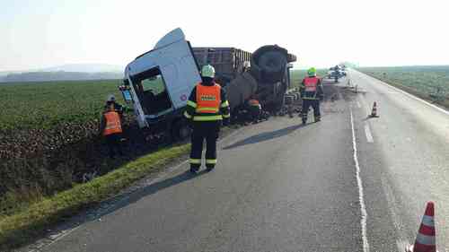 Dvě jednotky v sobotu 4.11. 2017 v dopoledních hodinách zasahovaly u převráceného nákladního auta v Brně-Tuřanech.