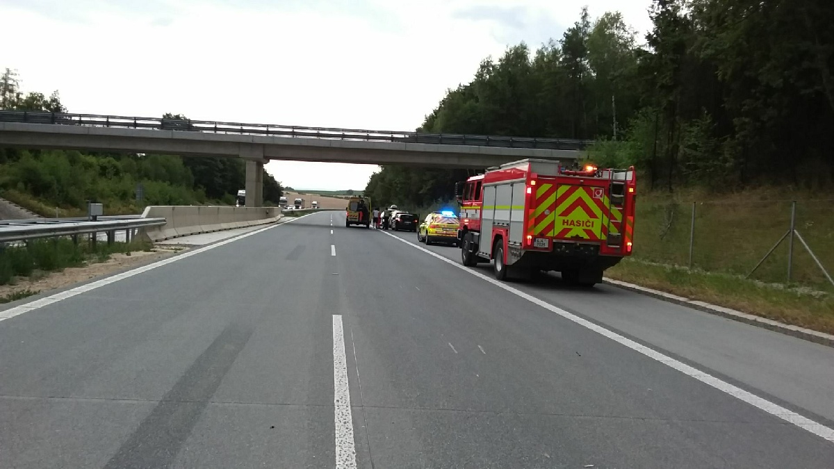 Podvečerní hromadná nehoda u Domašova zcela zastavila provoz ve směru na Brno. Při střetu pěti osobních automobilů se zde zranily dvě osoby.  Hasiči zabezpečili místo nehody a poškozené vozy proti požáru. Dálnice byla zprůjezdněna zhruba po hodině.