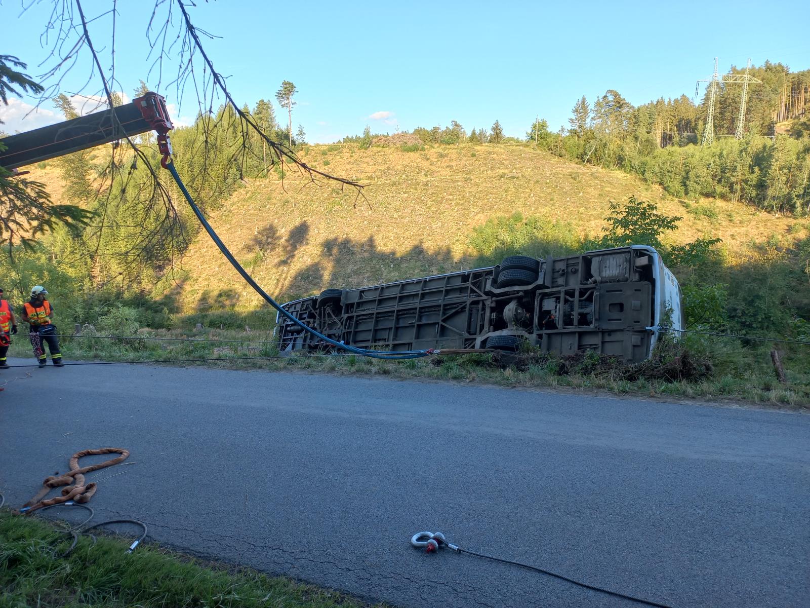 Úterý, 2. srpna 2022 - Jednotky z Velkých Opatovic, Boskovic a Brna spěchaly krátce po patnácté hodině k převrácenému autobusu nedaleko obce Velká Roudka na Blanensku.
