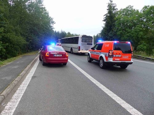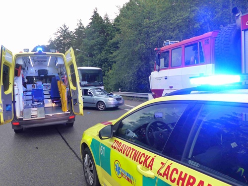 Při nehodě autobusu ve kterém cestovalo 20 osob s osobním vozidlem u obce Lesní Hluboké se zranili dva lidé