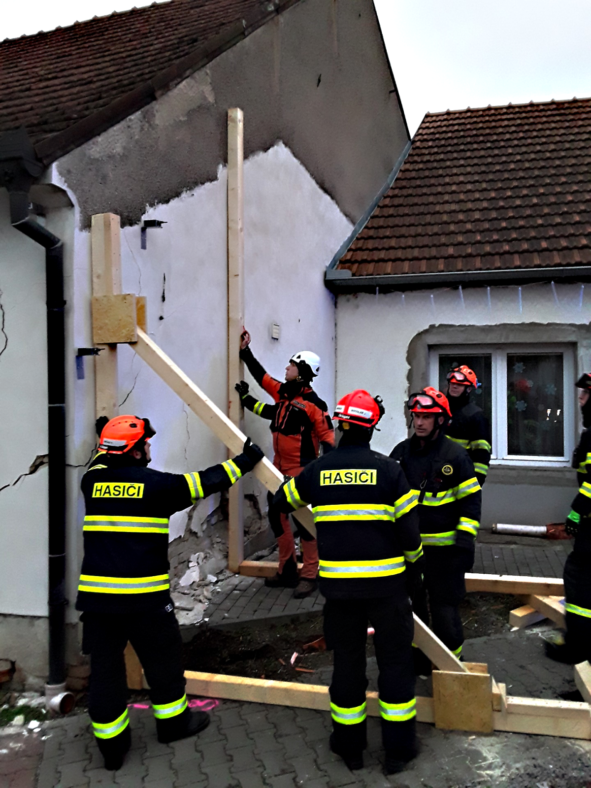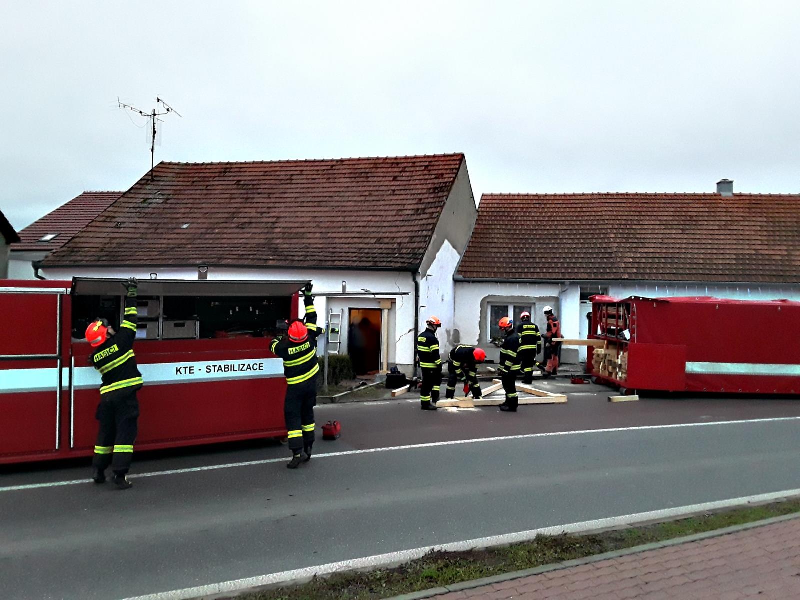 Výsledek průzkumu ukázal, že objekt je nestabilní a vyžaduje okamžité provizorní zajištění. K události proto dorazila specializovaná technika z brněnské centrální stanice na Lidické a ze stanice v Líšni. Hasiči nejprve pomocí navijáku odstranili havarovaný vůz, poté stabilizovali narušenou část domu.
