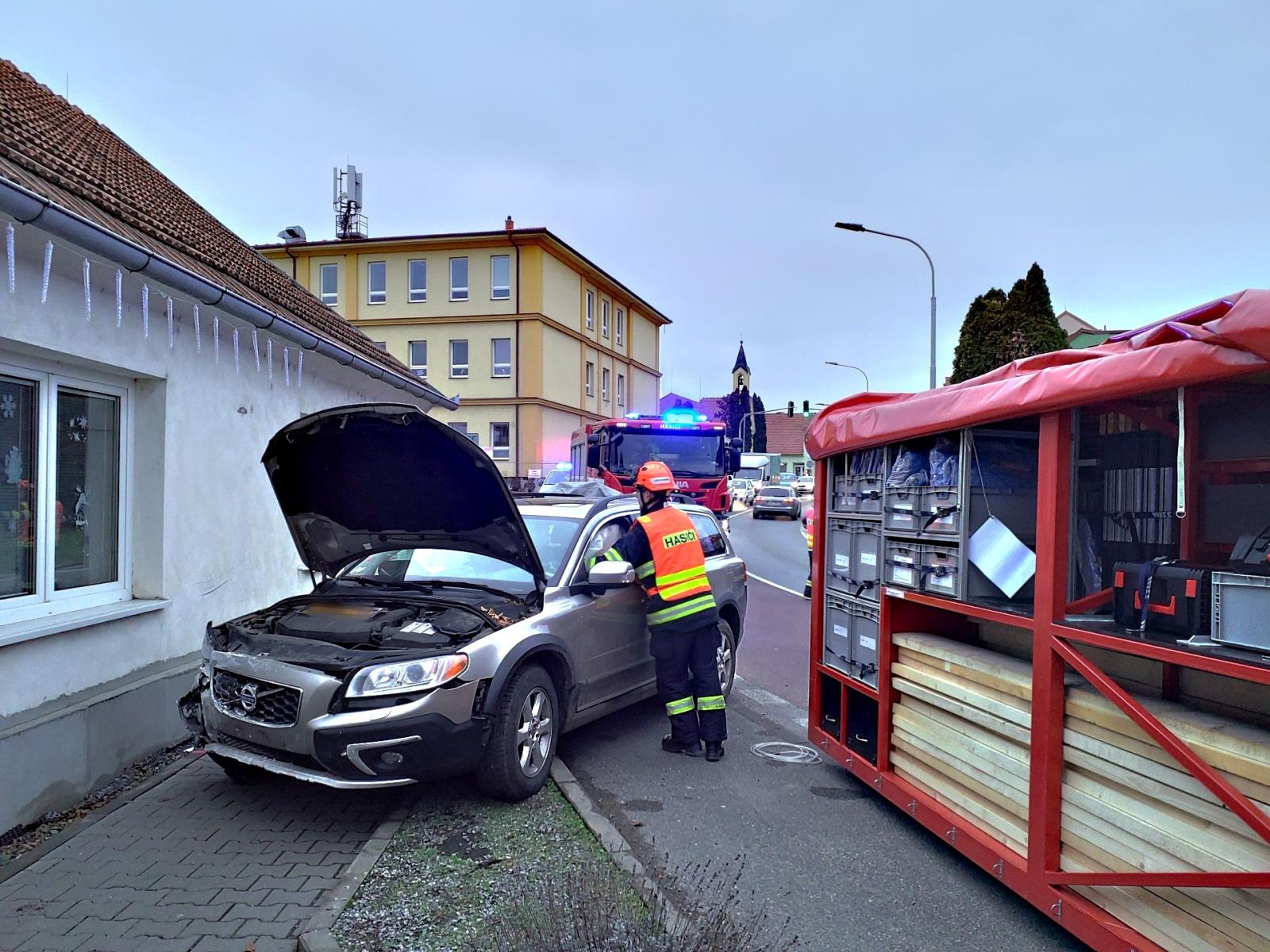 Auto srazilo chodce a vjelo do domu. Hasiči zasahovali pět hodin, zraněn byl i jeden z nich