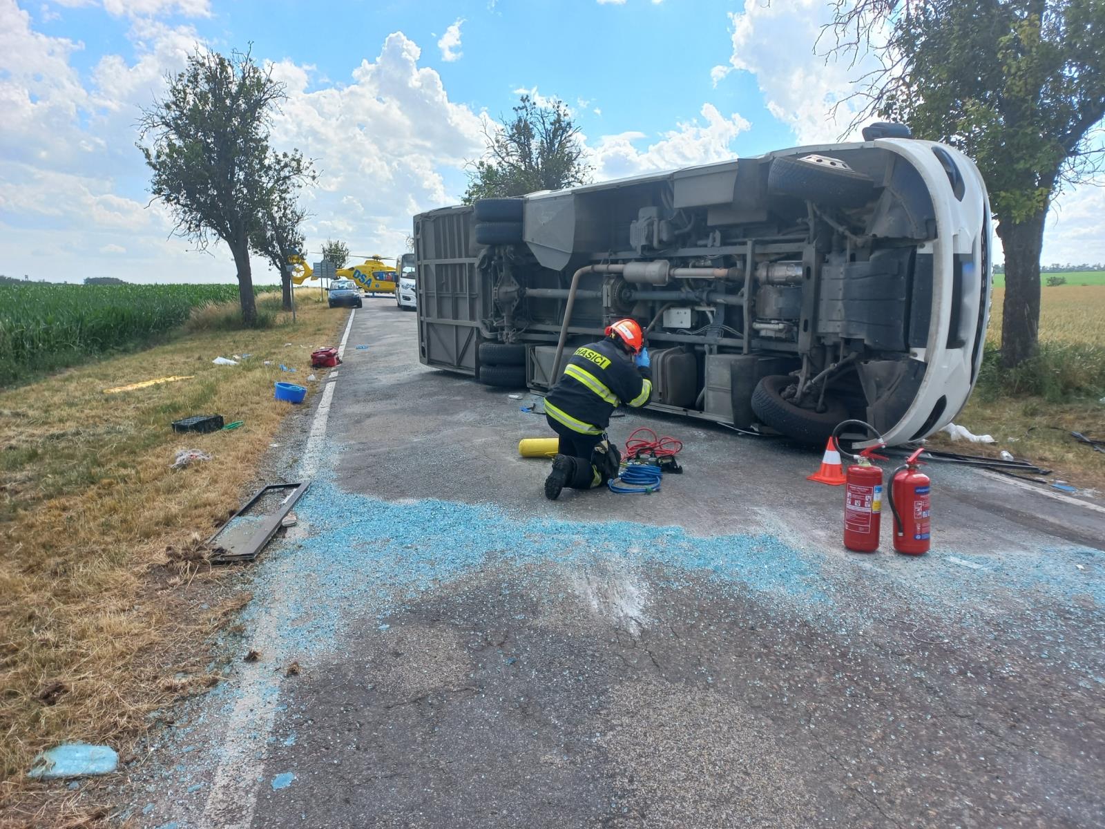 Hasiči na místě vyprošťovali jednu ženu a jednoho muže z mikrobusu. Použili k tomu zvedací vaky a hydraulické vyprošťovací zařízení. Místo nehody zajistili proti požáru a pomohli posádkám ZZS s transportem zraněných.