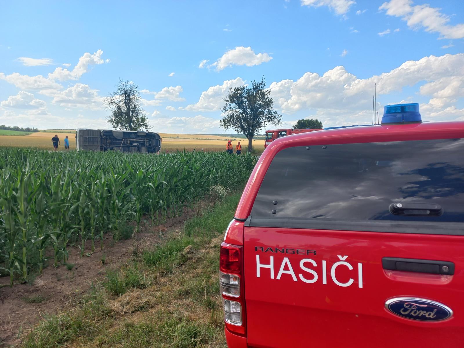 Nehoda mikrobusu a dodávky se stala na křižovatce nedaleko obce Miroslavské Knínice. Operační středisko vyslalo krátce před 15. Hodinou profesionální jednotky ze tří stanic.