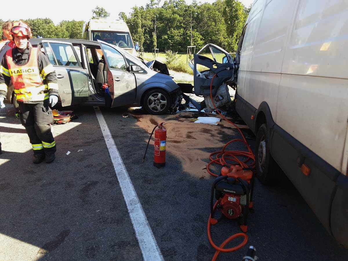 Nehoda osobního auta a dodávky zastavila provoz na silnici 380 poblíž Hodonína. Operační středisko vyslalo krátce před 8. hodinou jednotku ze stanice Hodonín a následně také jednotku dobrovolných hasičů obce Strážnice.