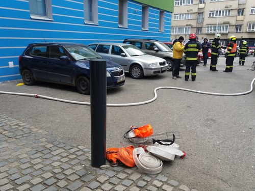 Současně s likvidací požáru evakuovali hasiči z prostor nad požárem 46 osob a to i s pomocí vyváděcích masek.
