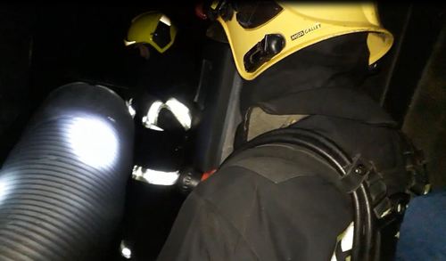 Obtížné bylo odvětrání suterénu. Využila se jak přetlaková ventilace, tak odsávání kouře z objektu.