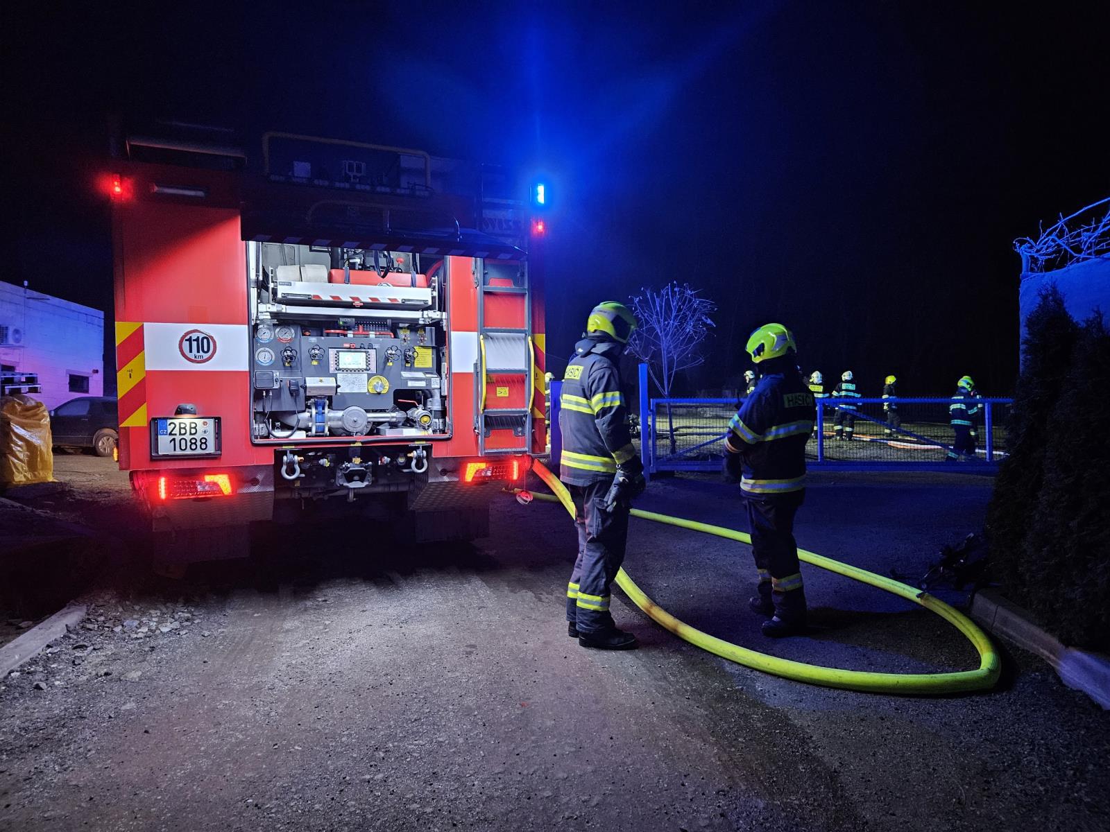 Plameny se podařilo během půl hodiny dostat pod kontrolu. Hasiči zasahovali za výbuchů, které byly způsobeny uskladněnými spreji. V objektu se nacházelo i větší množství tlakových lahví, z nichž devět museli hasiči vynést a ochlazovat mimo hořící budovu.