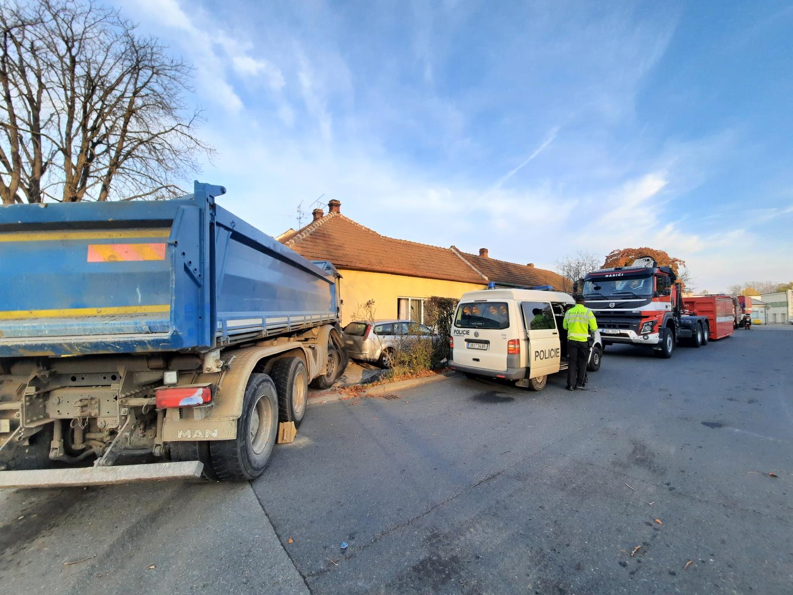 Při vážně nehodě v Brně poškodil nákladní automobil rodinný dům