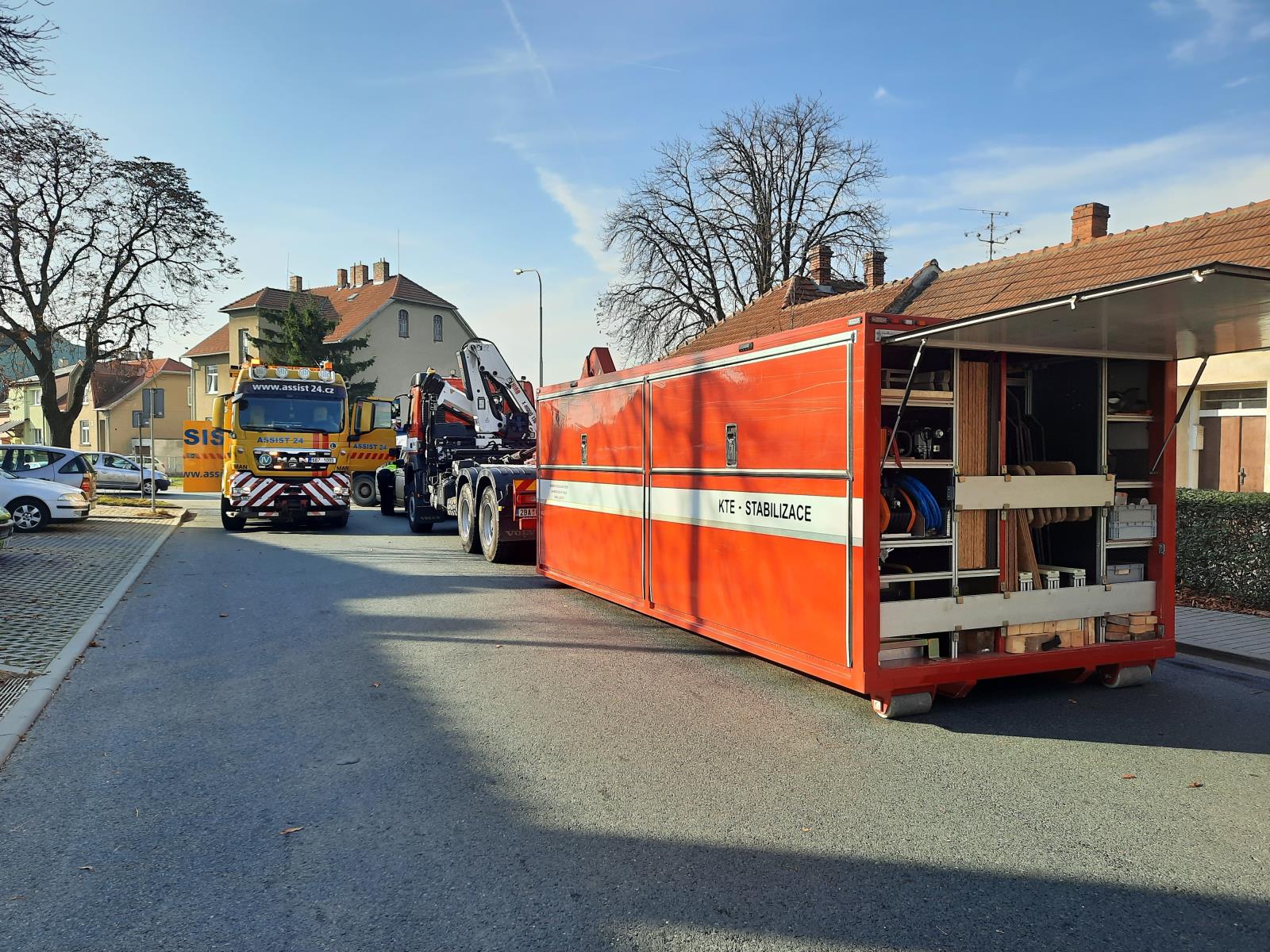 Po zadokumentovaní nehody policisty odtáhla specializovaná firma nákladní vozidlo. Hasiči pomocí navijáku vyprostili osobní vůz a pomocí výdřevy zabezpečili poškozenou část objektu.