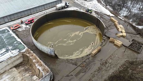 Příčina protržení stěny jímky je předmětem šetření majitele a inspektorů. Hasiči ani policie nezaznamenali zranění osob ani bezprostřední ohrožení života. Podle předběžných zjištění šlo o technickou závadu na konstrukci jímky.