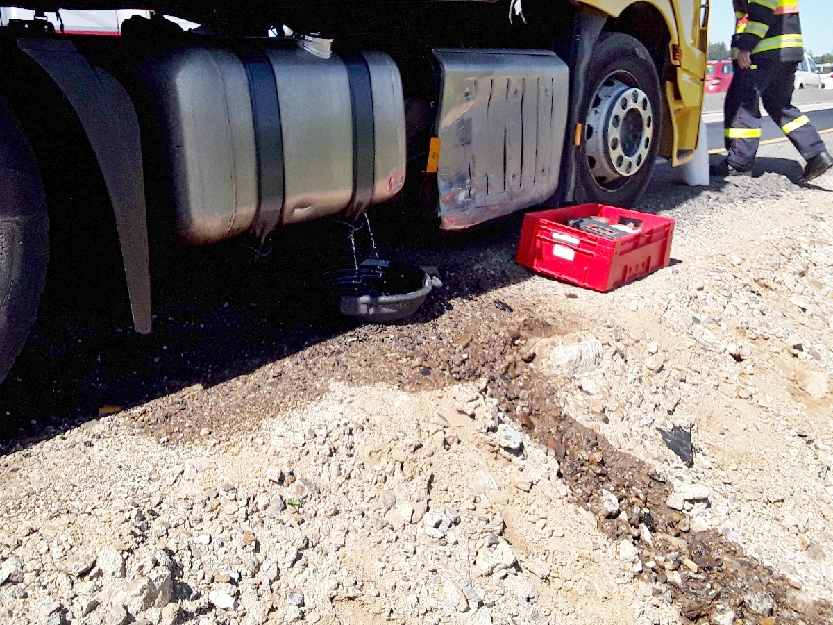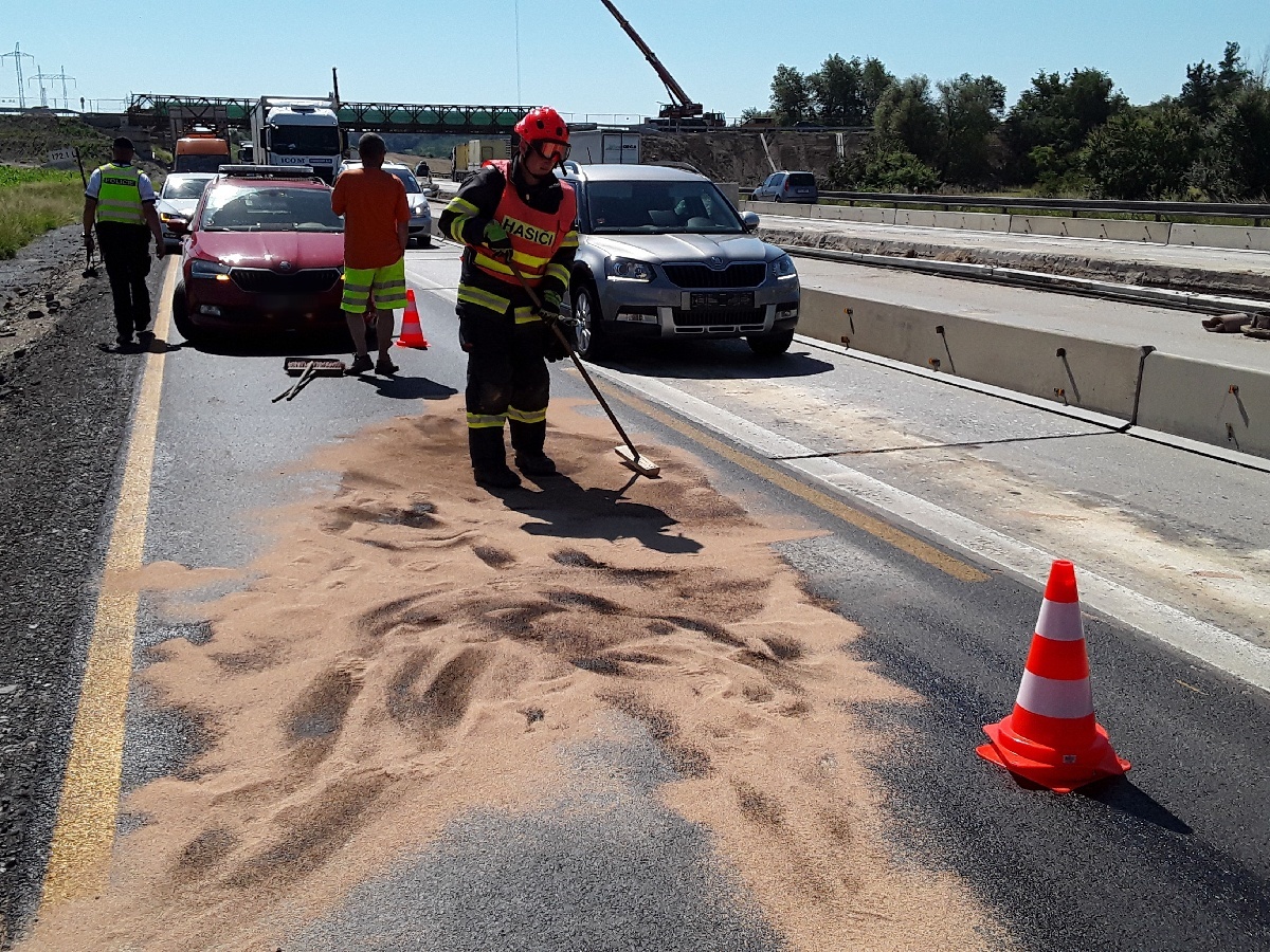 Pátek, 10.07.2020 - Dnes krátce po 10. hodině vyslalo operační středisko tři profesionální hasičské jednotky k úniku provozních náplní na dálnici D1. Komplikovaná byla již samotná cesta k zásahu, protože událost byla v místě dopravního omezení na 172. km ve směru na Prahu. Hasiči na místě zajistili unikající pohonné hmoty z poškozené nádrže kamionu. Povrch dálnice ošetřili sorbentem. Zásah na místě trval přibližně hodinu. Následně velitel zásahu předal místo Policii k ČR.