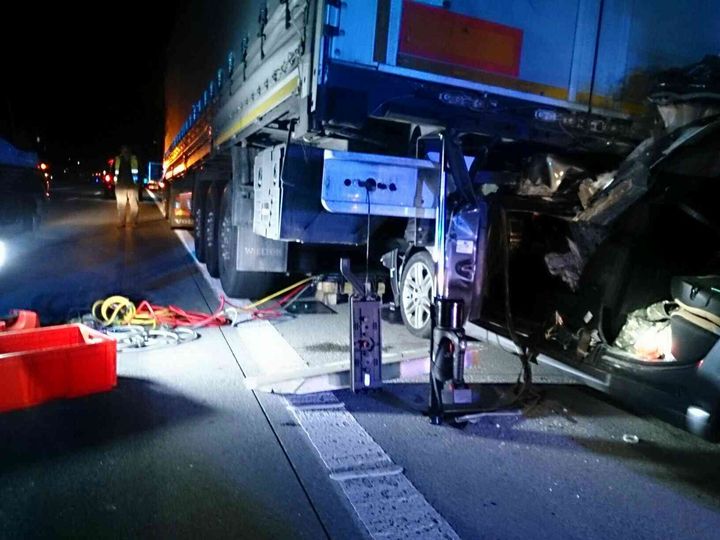 Jednotky vyjely k nehodě na 5. km dálnice ve směru na Brno krátce po 20. hodině. Po nárazu osobního auta do zadní části nákladního vozu museli hasiči dva cestující vyprostit. Místo zásahu nasvětlili pro potřebu vyšetřování Policie ČR a následně osobní vozidlo zaklíněné pod návěsem kamionu vyprostili. Akce skončila 90 minut po půlnoci.
