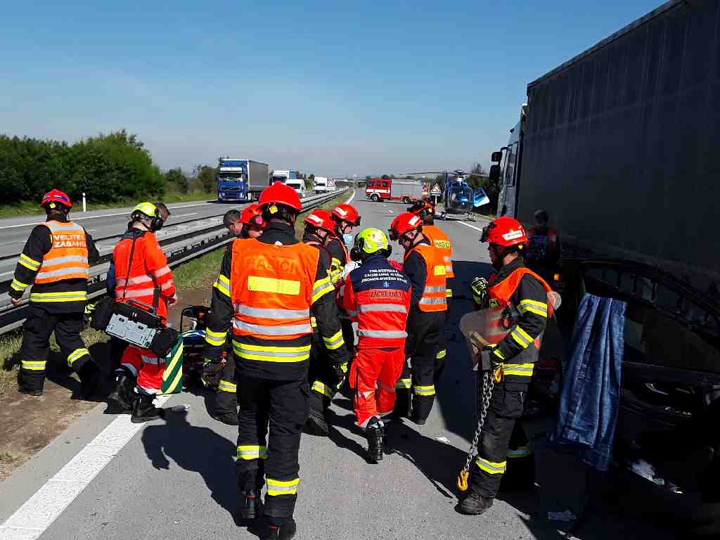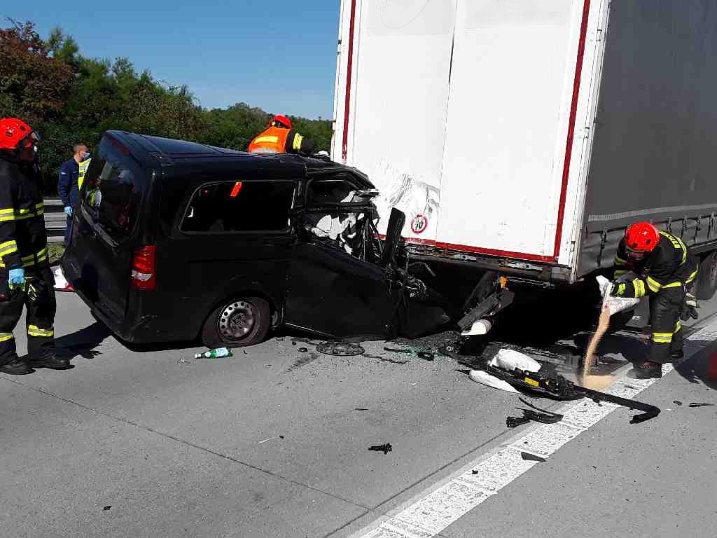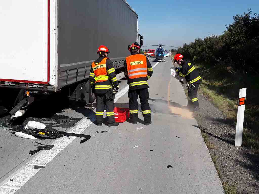Operační středisko vyslalo krátce po 10. hodině 3 profesionální hasičské jednotky k nahlášené dopravní nehodě kamionu a dodávky na 6. kilometr dálnice D2 u Rebešovic na Brněnsku. Hasiči po příjezdu zjistili, že dodávka havarovala čelně do zadní části návěsu kamionu. Uvnitř zůstal zaklíněný zraněný řidič.