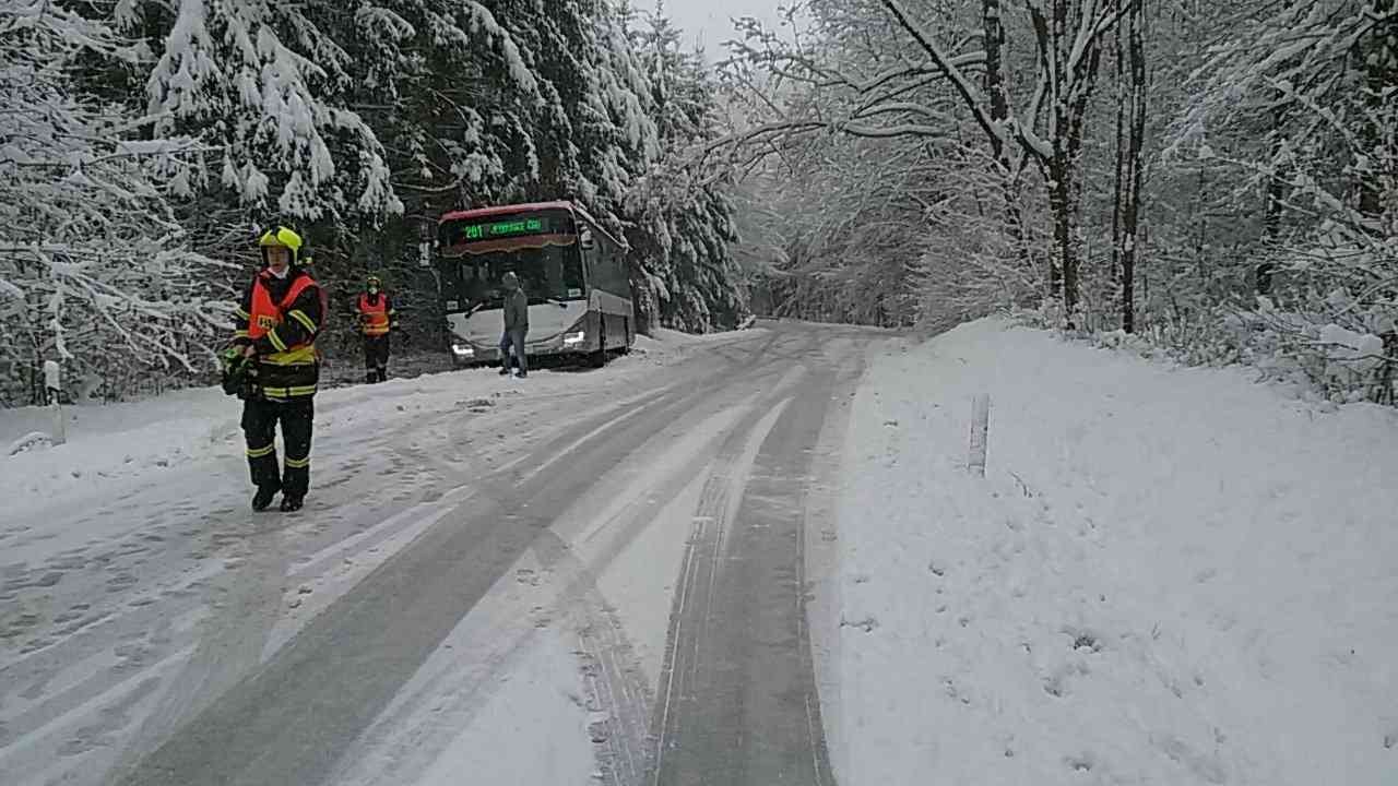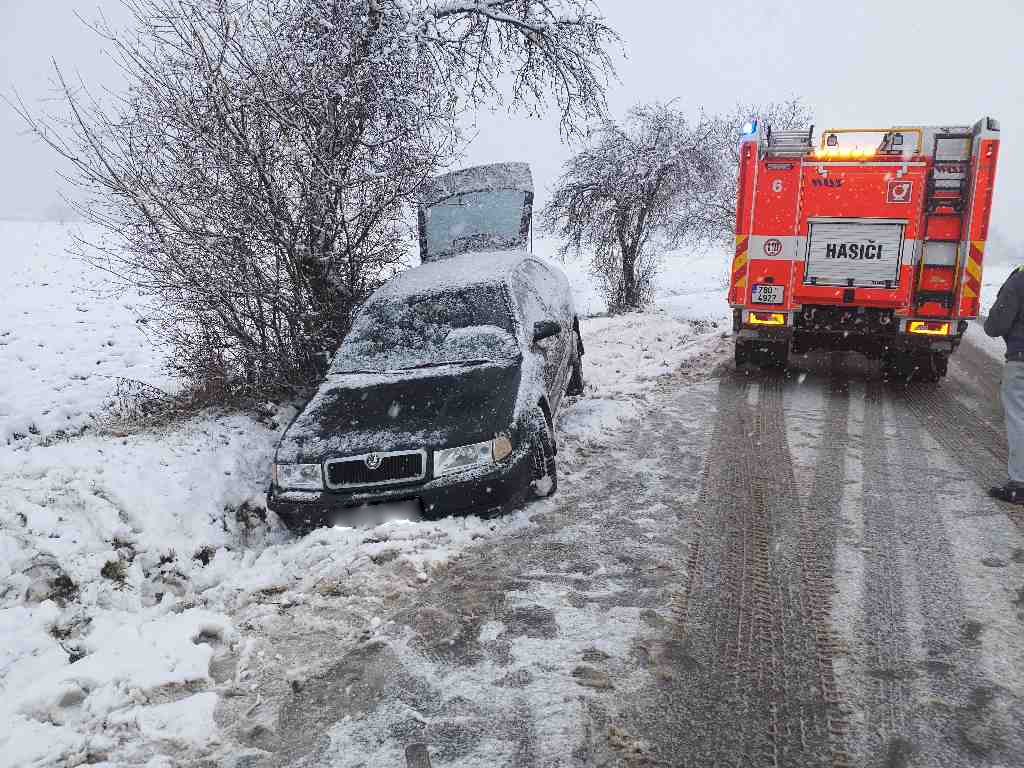 První sníh potrápil řidiče a zaměstnal hasiče