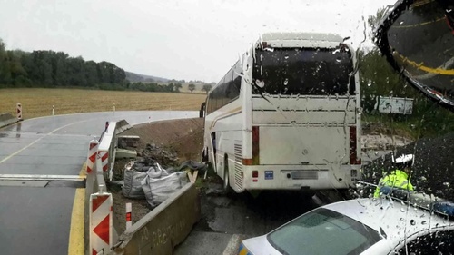 Na silnici I/43 z Brna na Svitavy havaroval v neděli 3.září 2017 autobus. Řidič zřejmě přehlédl objízdnou trasu, projel betonovým bedněním a skončil na staveništi. Nikdo z cestujících se nezranil. Další nežádoucí pohyb autobusu nehrozil, vytažení a odtažení autobusu si zajistil majitel.