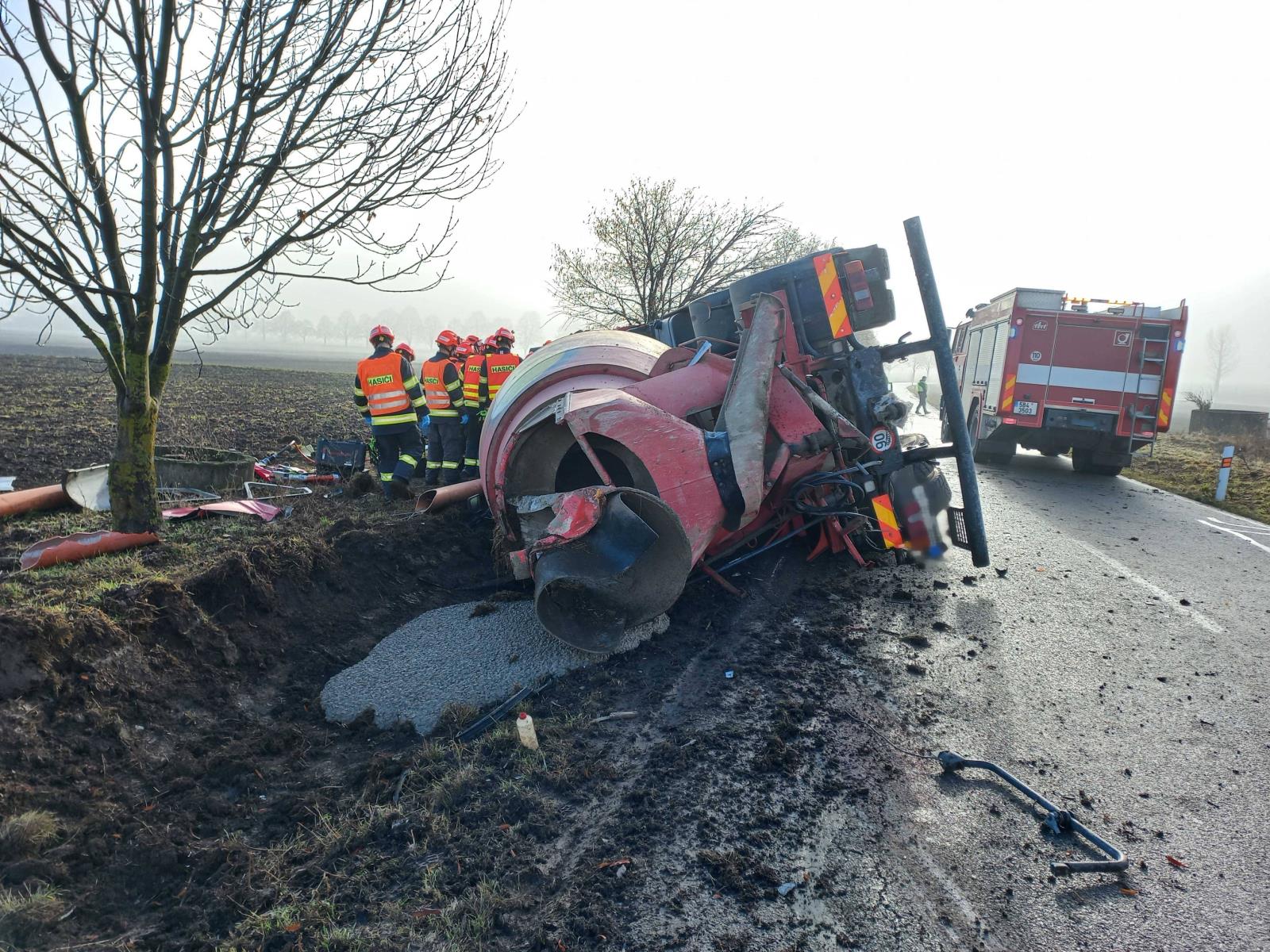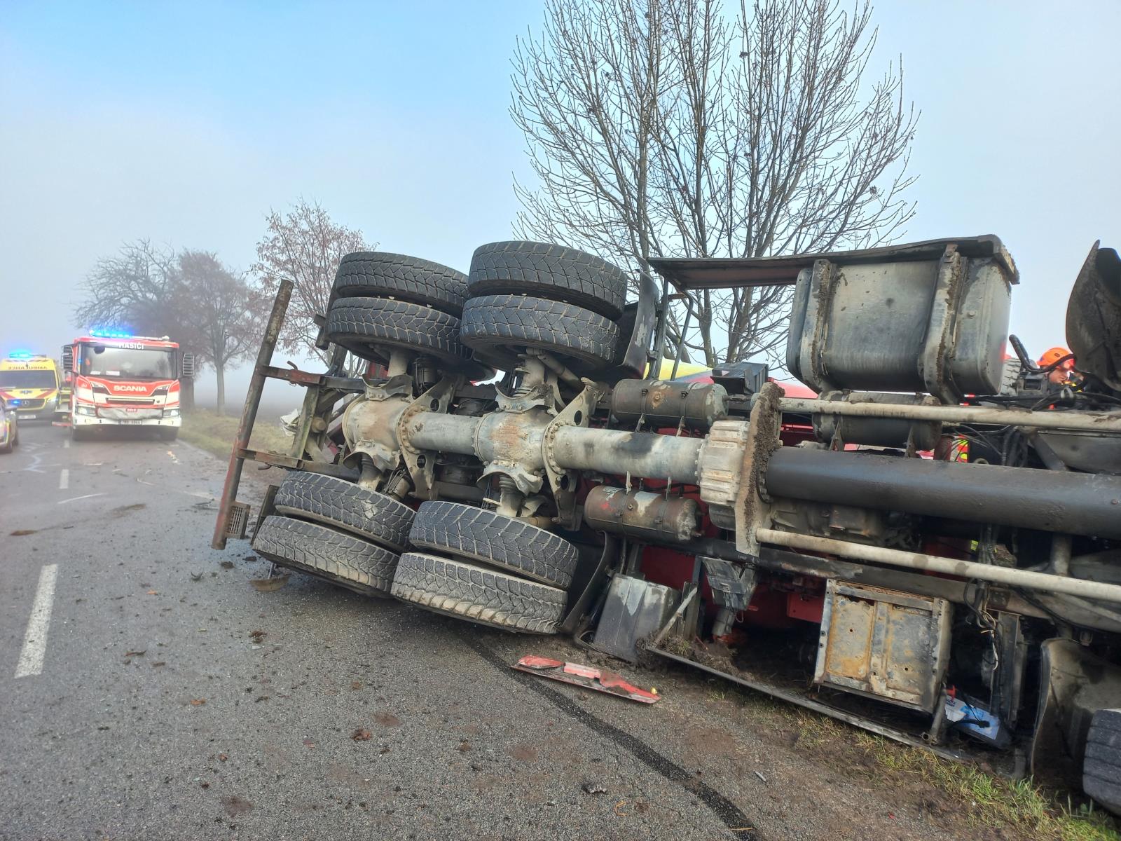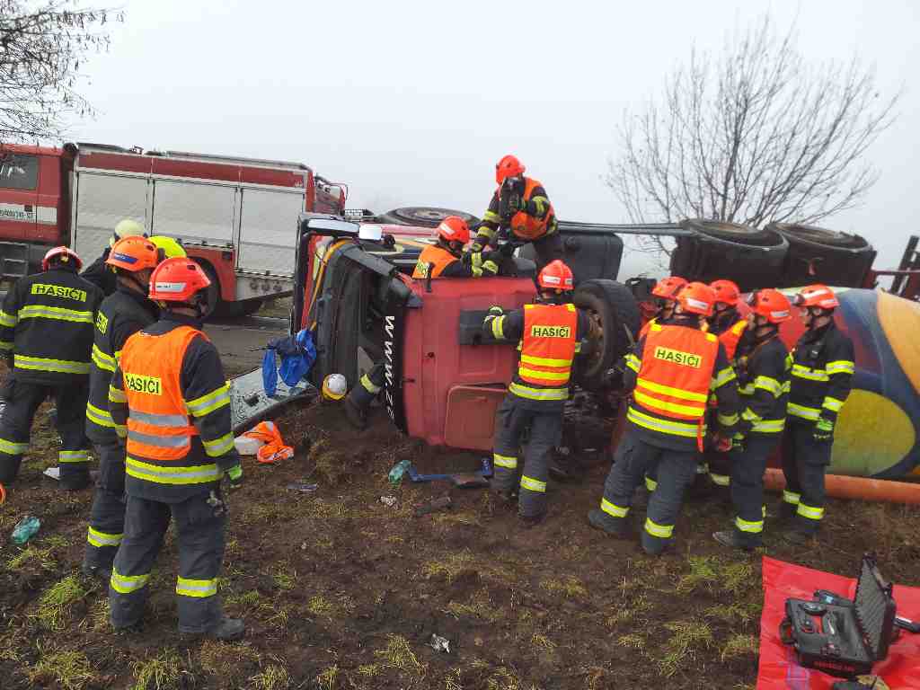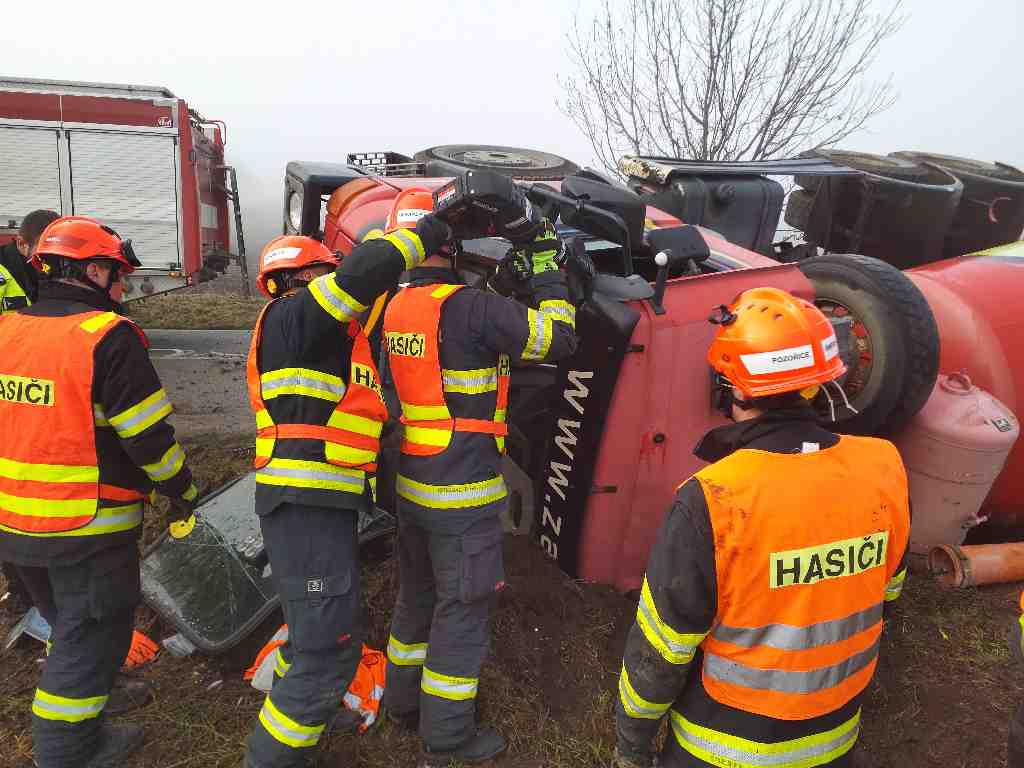 Řidič nákladního auta, které skončilo částečně mimo silnici, nehodu nepřežil a z kabiny jsme jej museli vyprostit. Přibližně po půl hodině od příjezdu první jednotky se muže podařilo s použitím hydraulické vyprošťovací soupravy dostat z vozidla. Náročné vyproštění komplikovala deformace kabiny zapasované do příkopu.