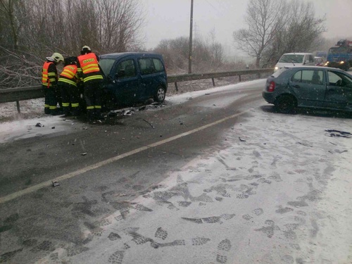 Od půl jedenácté během 45 minut hasiči vyjeli hned k 6 nehodám. Pět z nich bylo na Hodonínsku kolem Kyjova a další na Břeclavsku. Postupně však k nehodám vyjížděly jednotky i v jiných okresech a to především na jihu kraje.