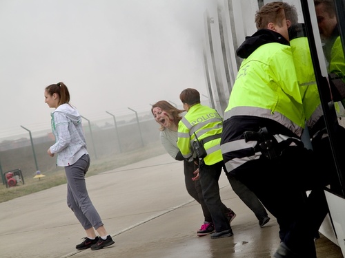 Námětem cvičení byl střet letounu L410 s letištním autobusem. Při nárazu se zlomilo pravé křídlo a začalo unikat palivo. Vlivem zajiskření kovových částic vznikl požár. Ohlášen byl ve 13 hodin.