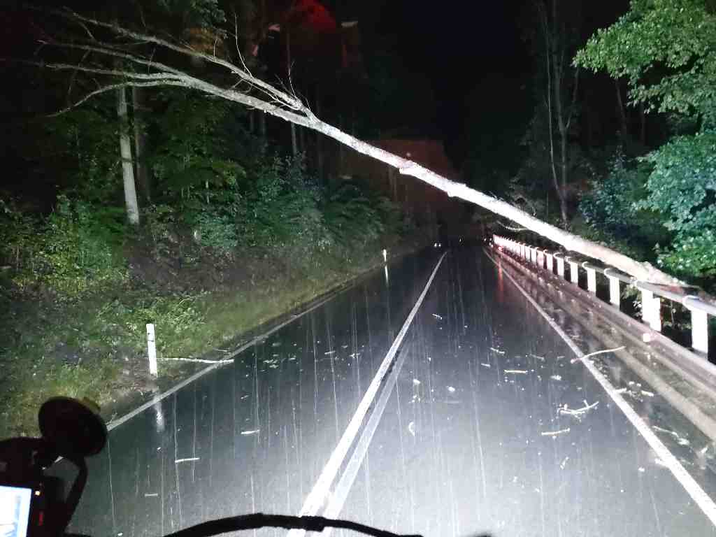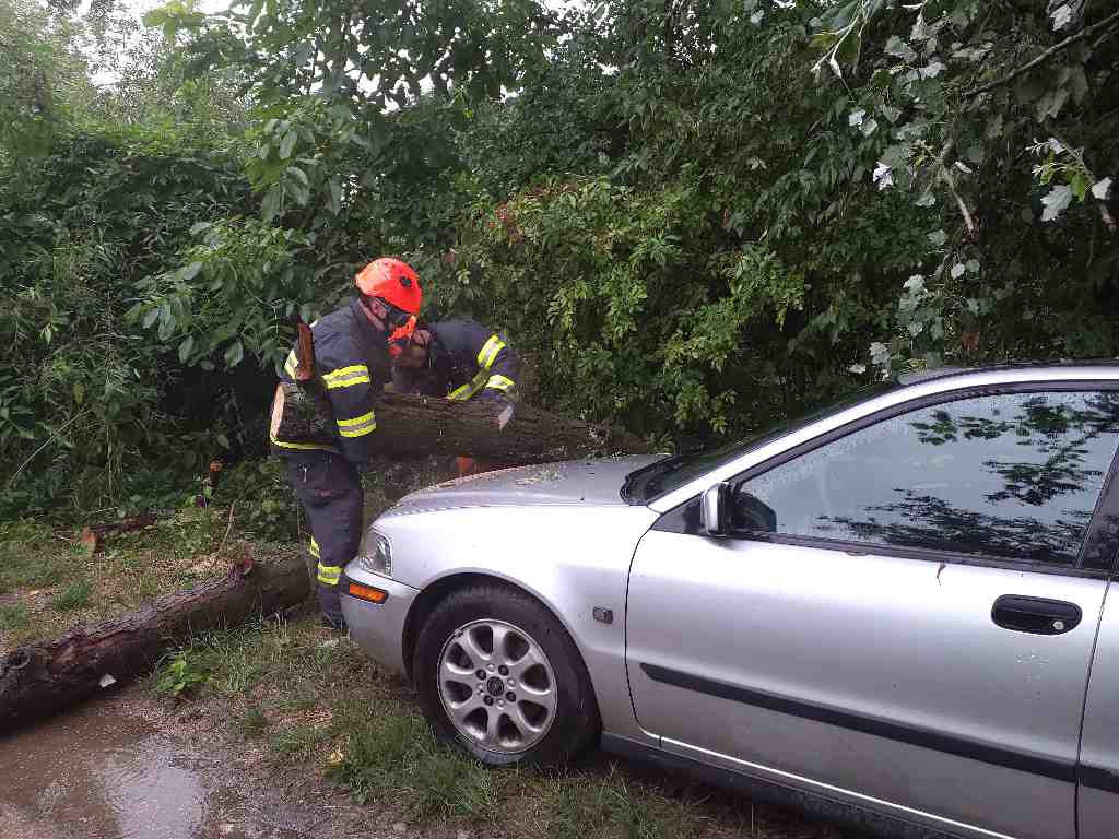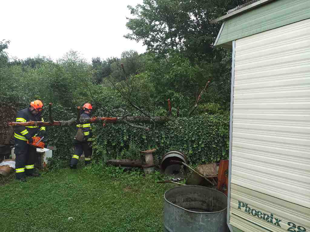 Jednalo se většinou o popadané stromy na komunikace (8). Ve Vřesovicích na Hodonínsku spadený strom ohrožoval střechu táborové kuchyně.  Strom hasiči odstranili z výškové techniky pomocí motorové pily.