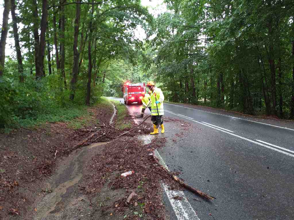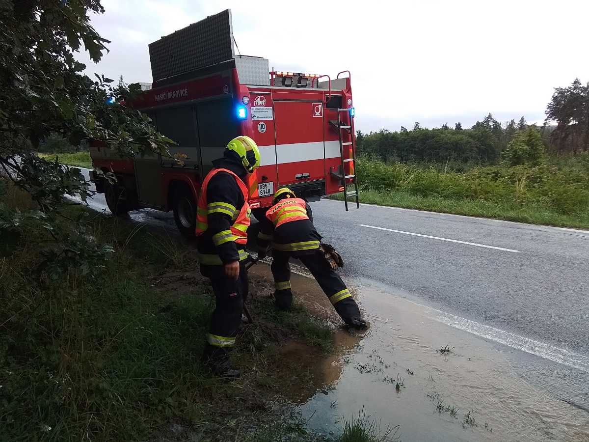 Ve 3 případech hasiči odstraňovali nebezpečné stavy. Z Drnovic do Ježkovic hasiči odstraňovali naplaveniny zeminy ze silnice.