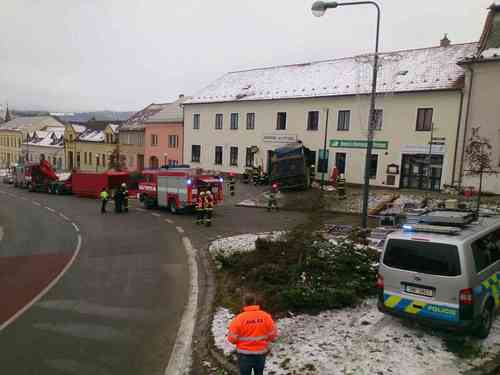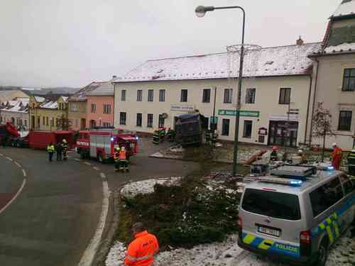 Devět jednotek postupně zasahovalo v pondělí 17.prosince 2018 u dopravní nehody nákladního auta v Kunštátu. Řidiče vyprostili hasiči ze zcela zdemolované kabiny. Únik plynu značně komplikoval zásah. Náraz náklaďáku narušil statiku domu.